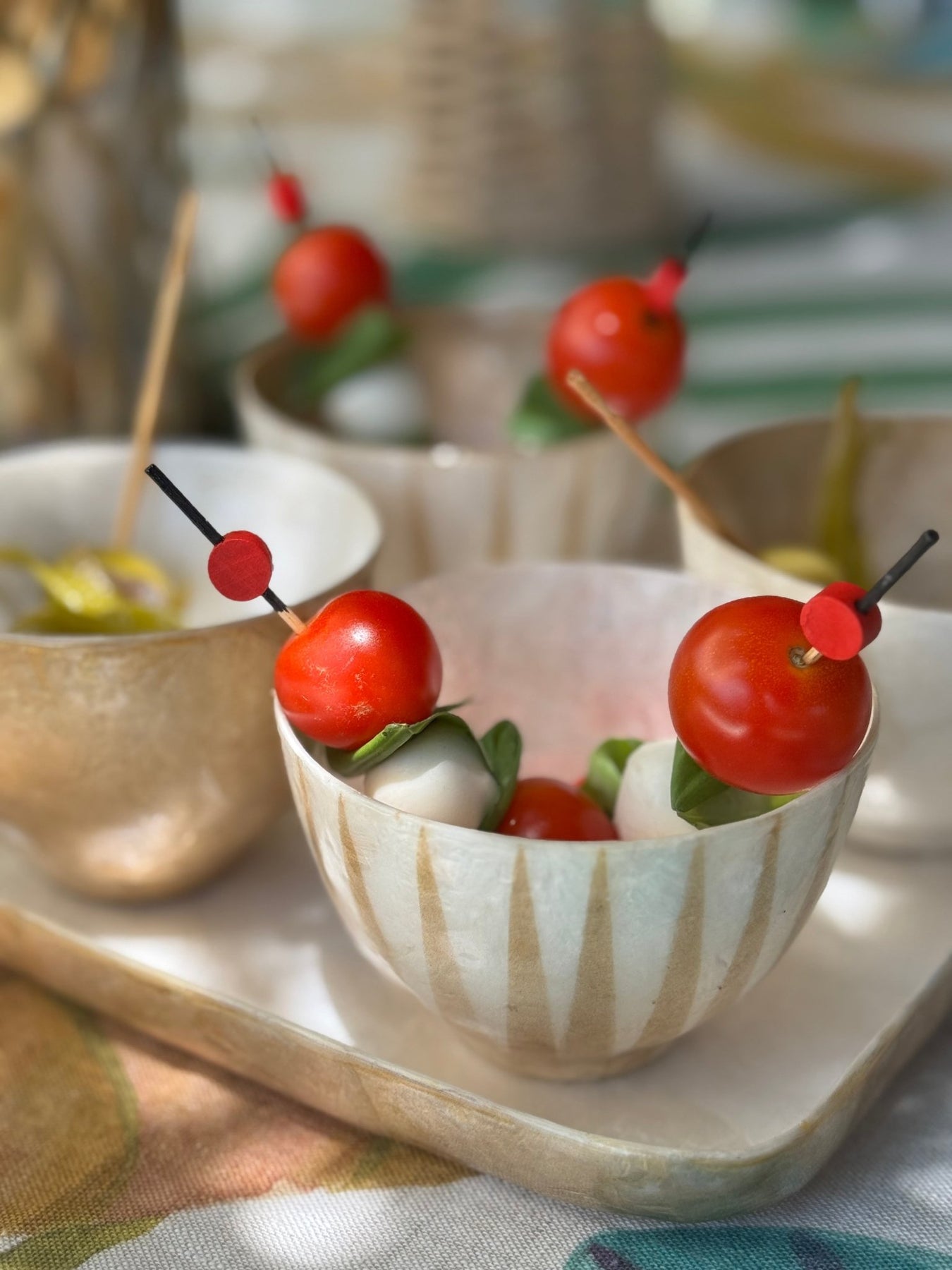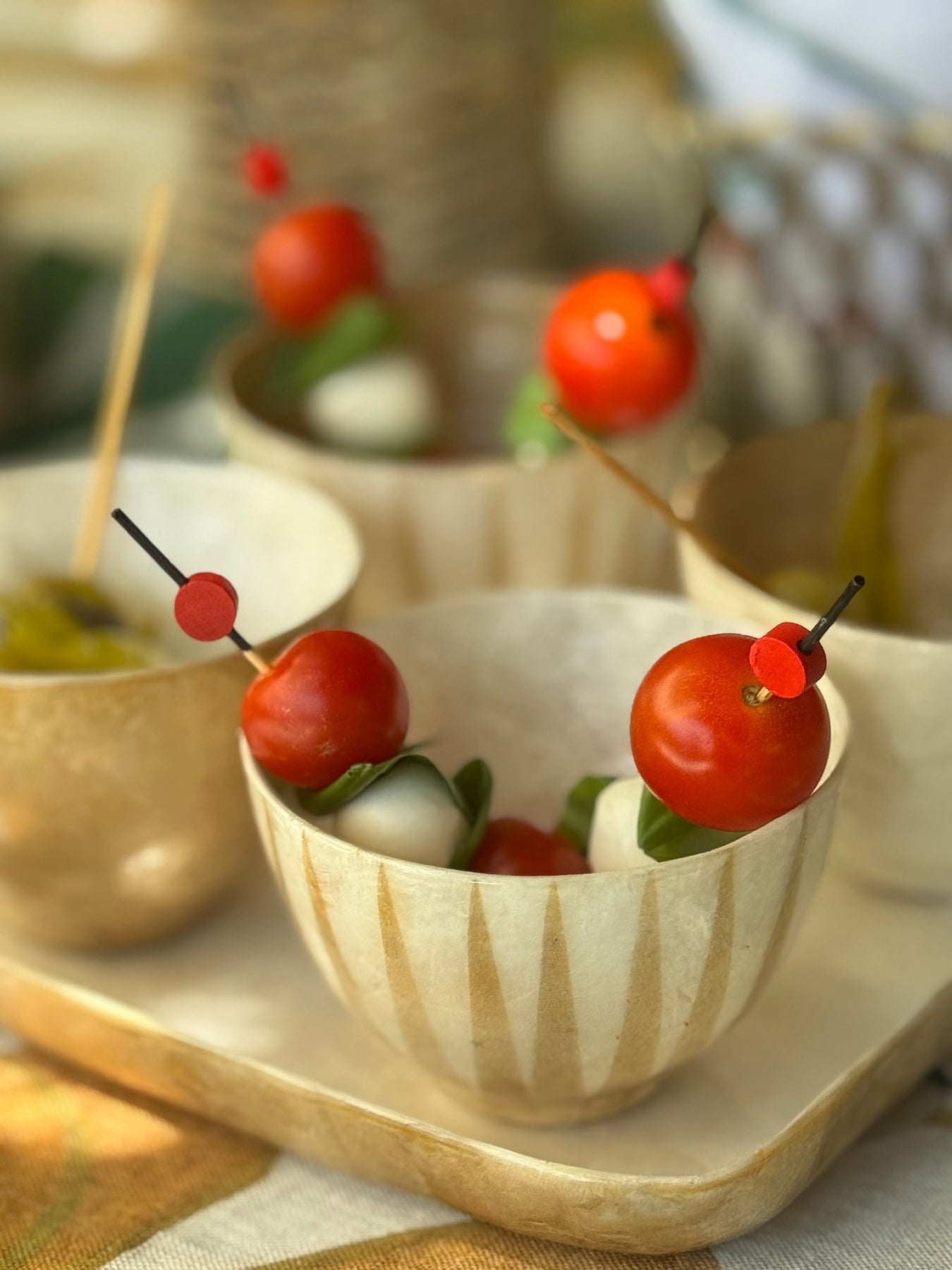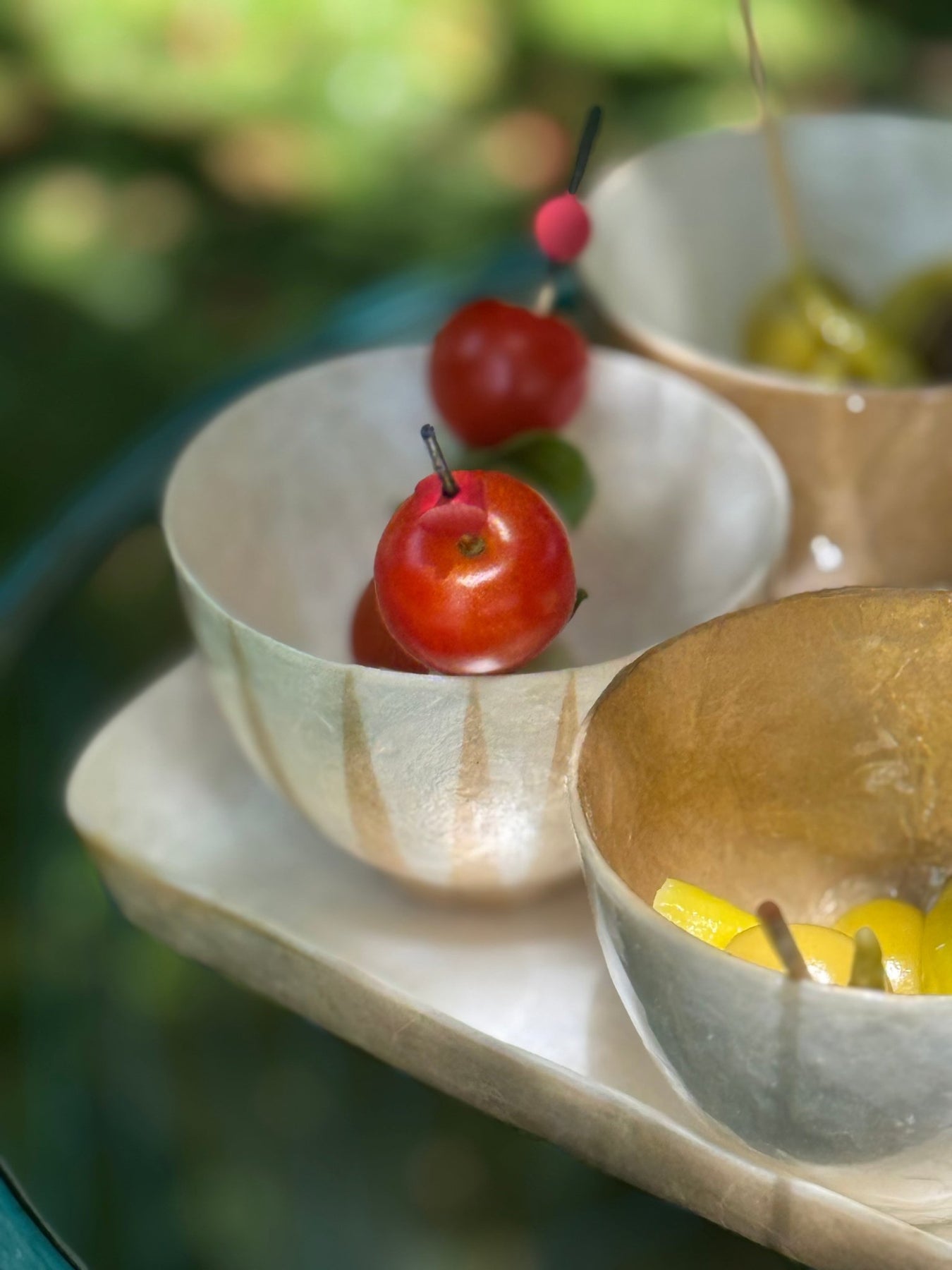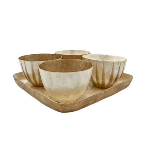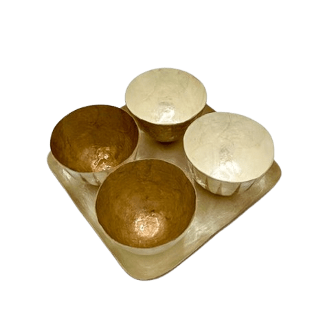 Elegante bandeja combinada con 4 bowls de la línea Jacinta Gold.