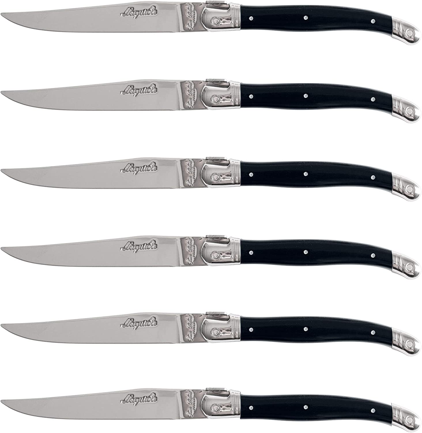 Este juego de 6 cuchillos de carne Laguiole está fabricado en la empresa familiar de 100 años de antiguedad Jean Dubost. Los cuchillos afilados, elegantes y sólidos se adaptan muy bien a la mano y tienen un grosor de acero de 1,5 mm.