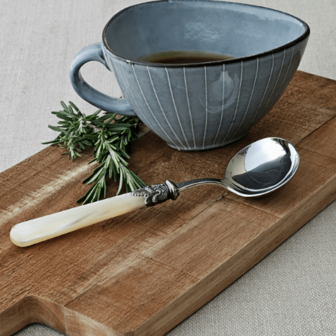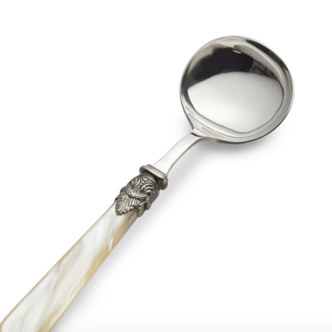 Un accesorio imprescindible para servir con estilo. La cuchara para salsa de la serie Napoleón, fabricada en Italia, se distingue por su diseño elegante, el brillo impecable del acero inoxidable 18/10 y sus mangos en acrílico metalizado disponibles en preciosos colores.