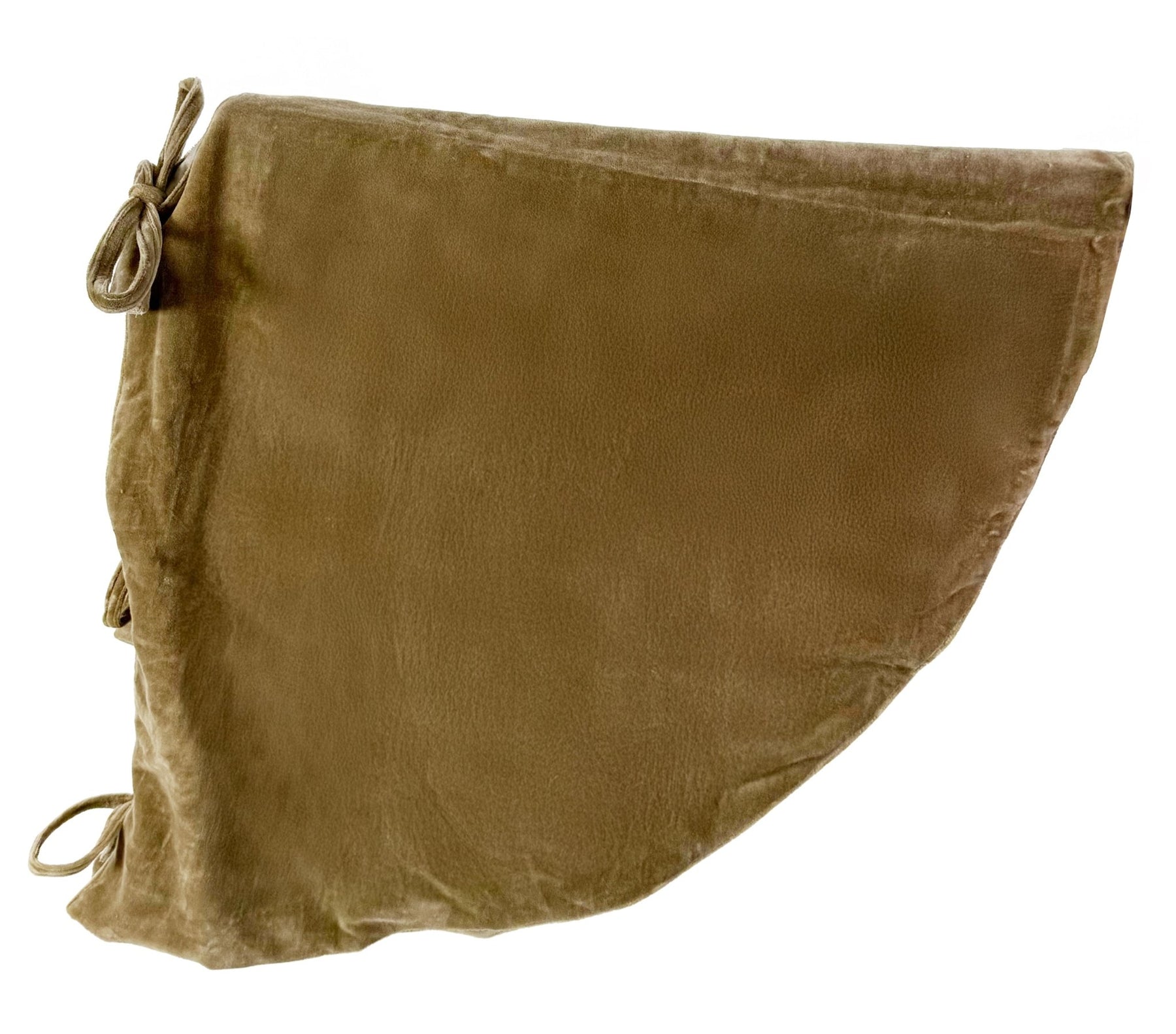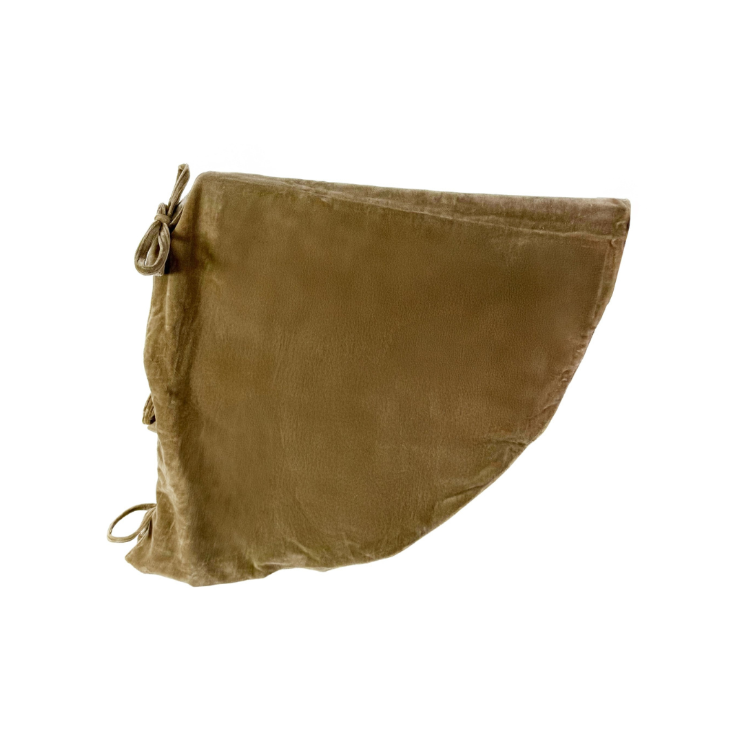Elegante cubre pie de árbol de Navidad en terciopelo marrón, ideal para dar un toque cálido, original y sofisticado a la base del árbol durante las celebraciones.