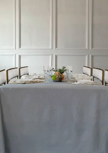 En La Compañía Francesa confeccionamos manteles cuadrados para mesas redondas porque resultan más actuales, frescos y elegantes.