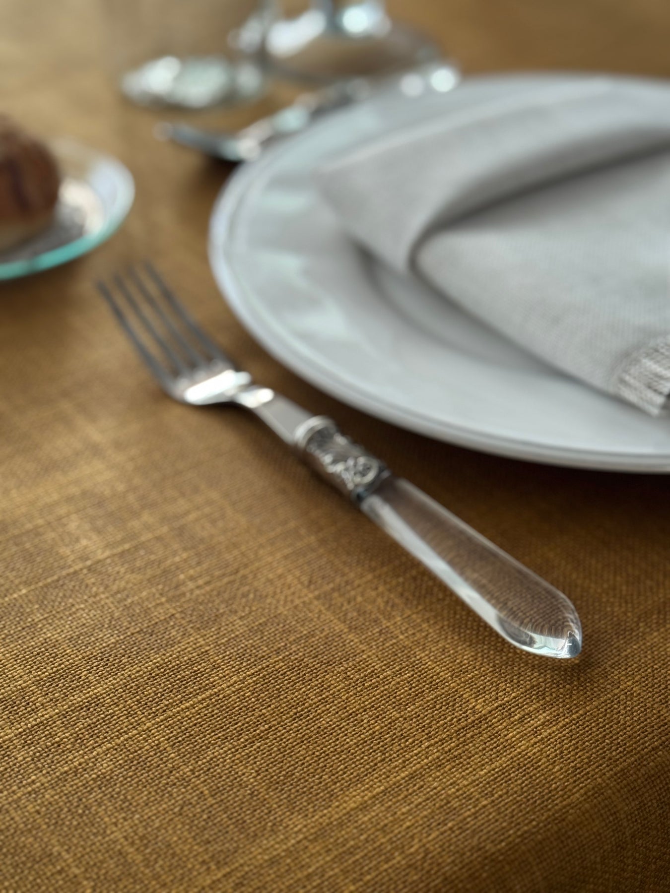 En La Compañía Francesa nos gusta hacer manteles cuadrados para mesas redondas, ya que lucen más sofisticados y modernos.