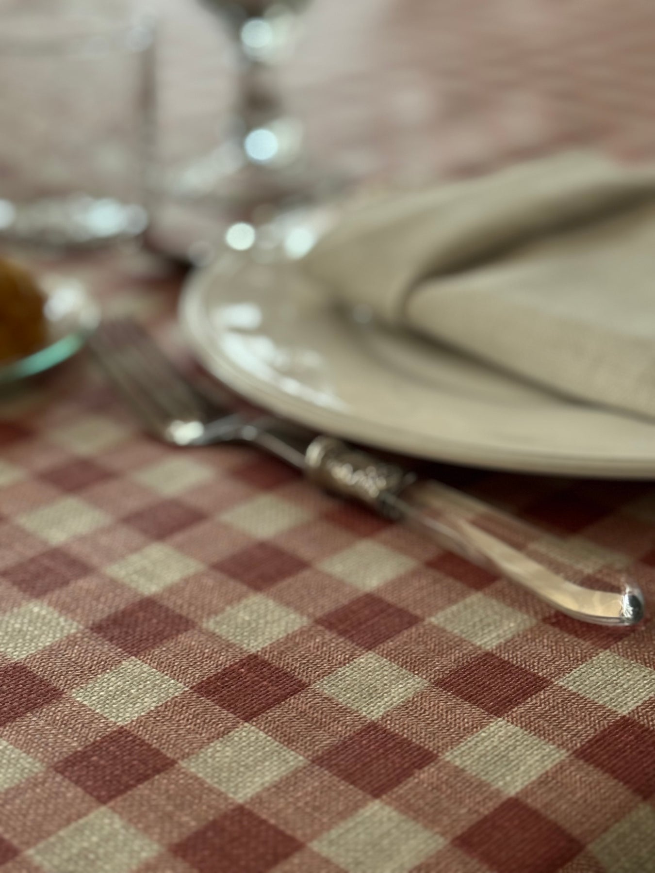 En La Compañía Francesa nos gusta hacer manteles cuadrados para mesas redondas, ya que lucen más sofisticados y modernos.