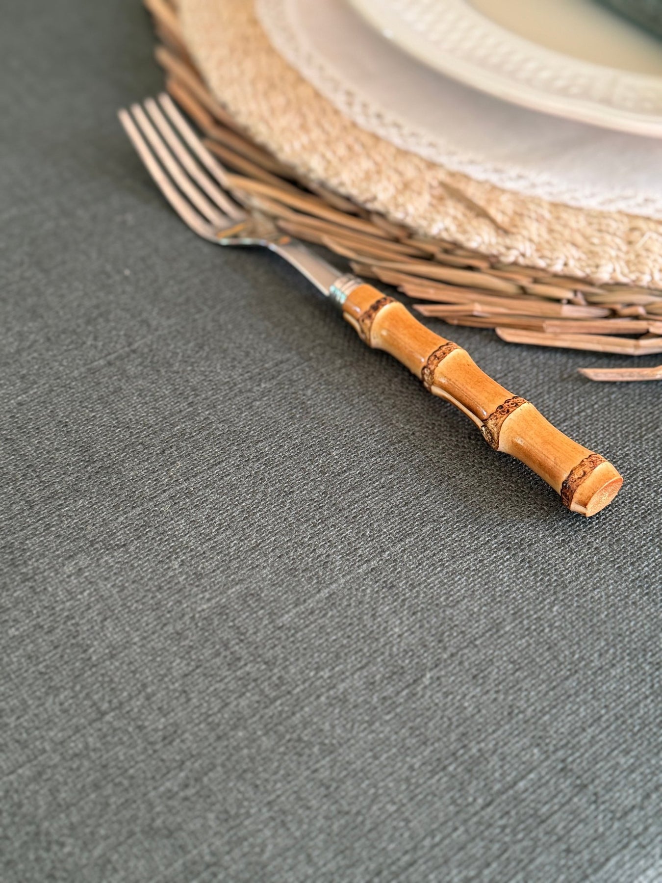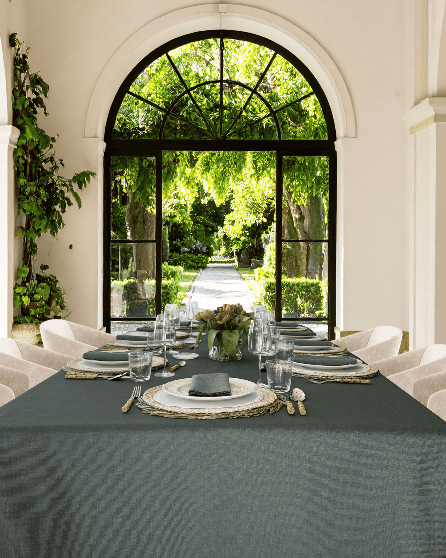 Seleccionamos lino y algodón de procedencia noble, trabajados en telares de precisión para lograr una caída fluida y un tacto sedoso reservado a las mesas más distinguidas.