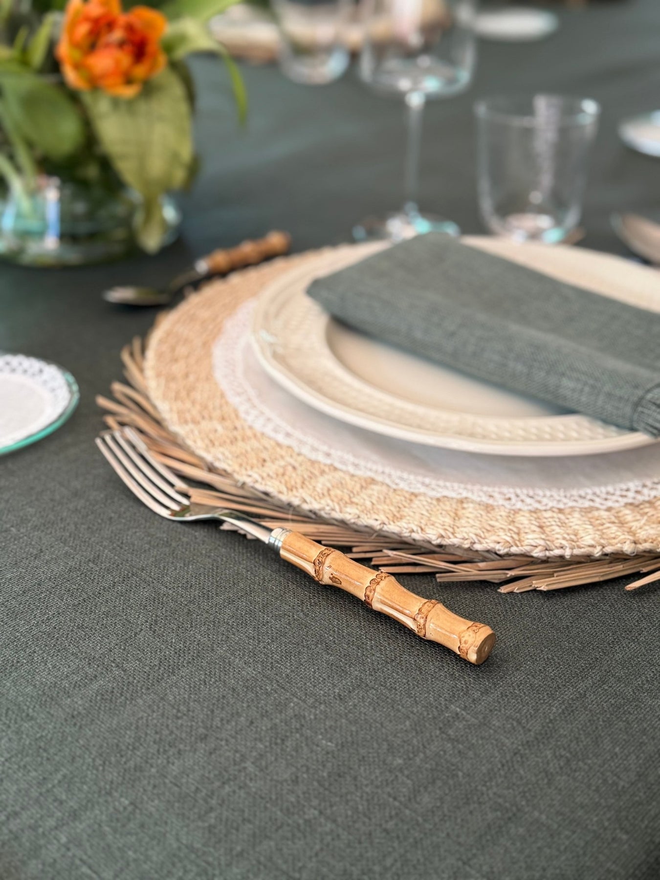 Confeccionados a mano en nuestro atelier en Madrid: líneas puras y costuras perfectas que visten su mesa con la precisión y el porte de la alta costura.