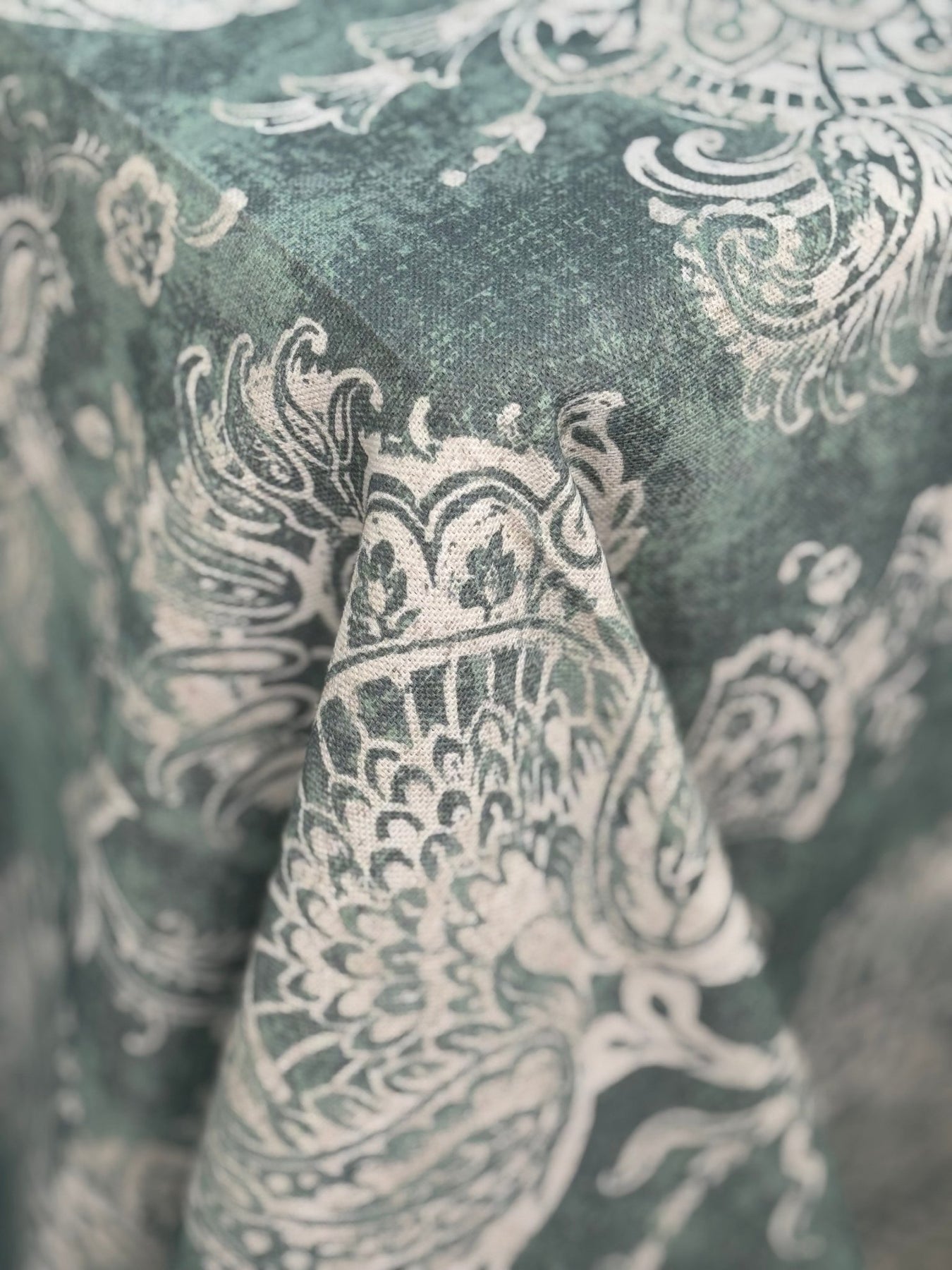 Esta tela tiene un ancho de 2,80 metros, por lo que el ancho máximo de tu mesa puede ser de hasta 2 metros.