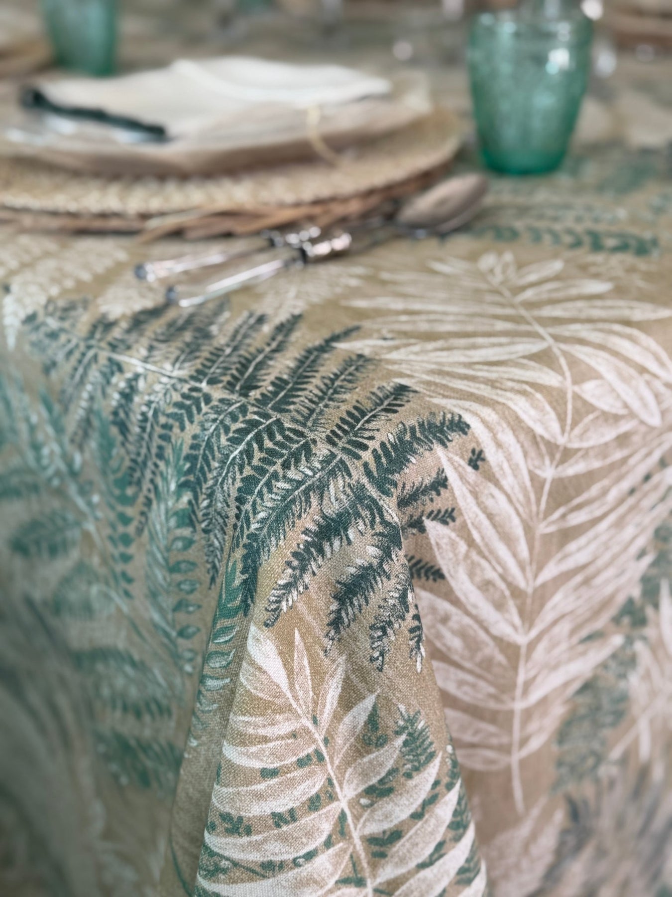 Esta tela tiene un ancho de 2,80 metros, por lo que el ancho máximo de tu mesa puede ser de hasta 2 metros.