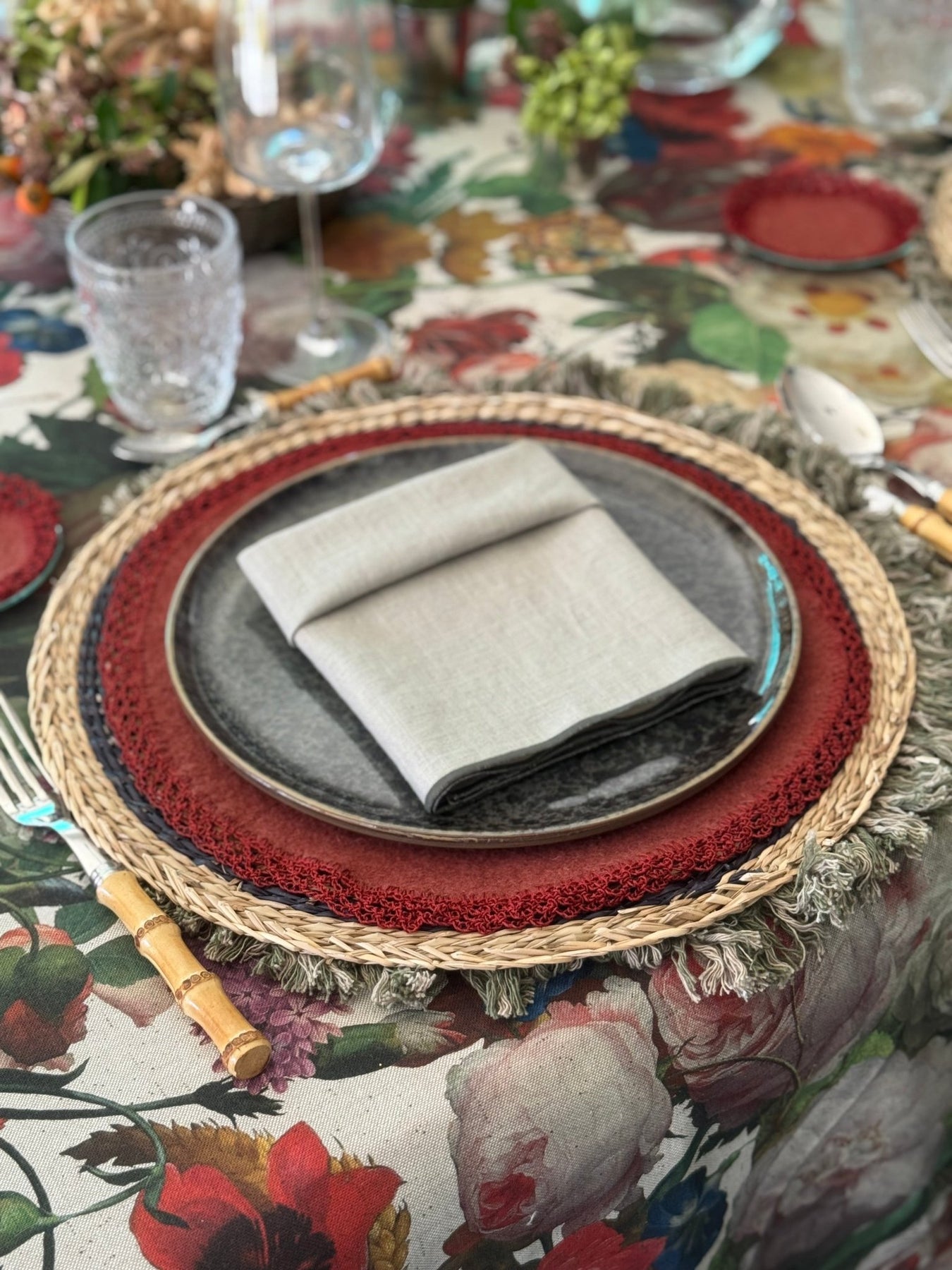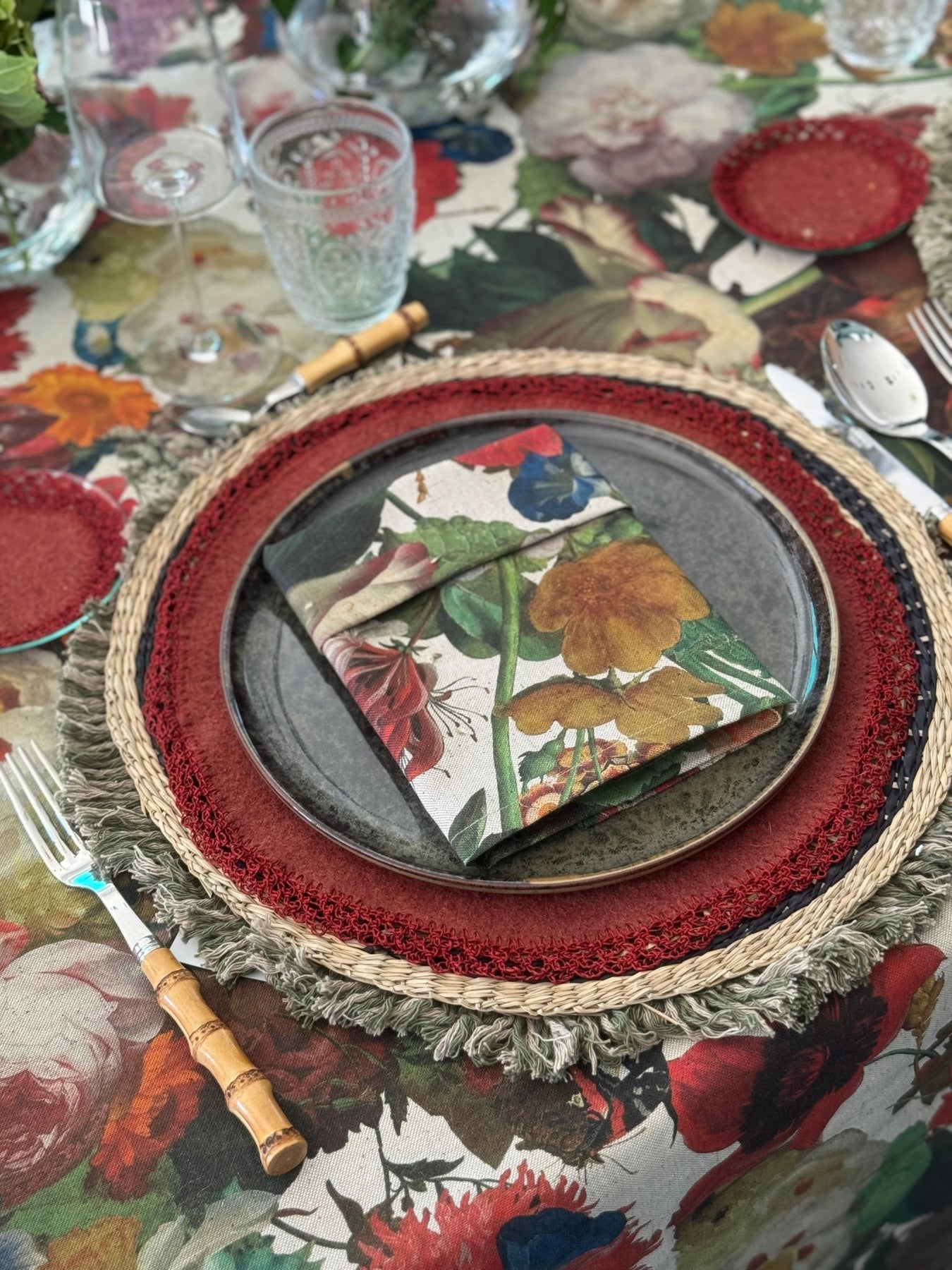 “Muchísimas gracias por estas servilletas tan maravillosas. He llegado a la finca en Extremadura y no me ha podido hacer más ilusión ver vuestros manteles. Espectaculares. Gracias.” @carmenlealch