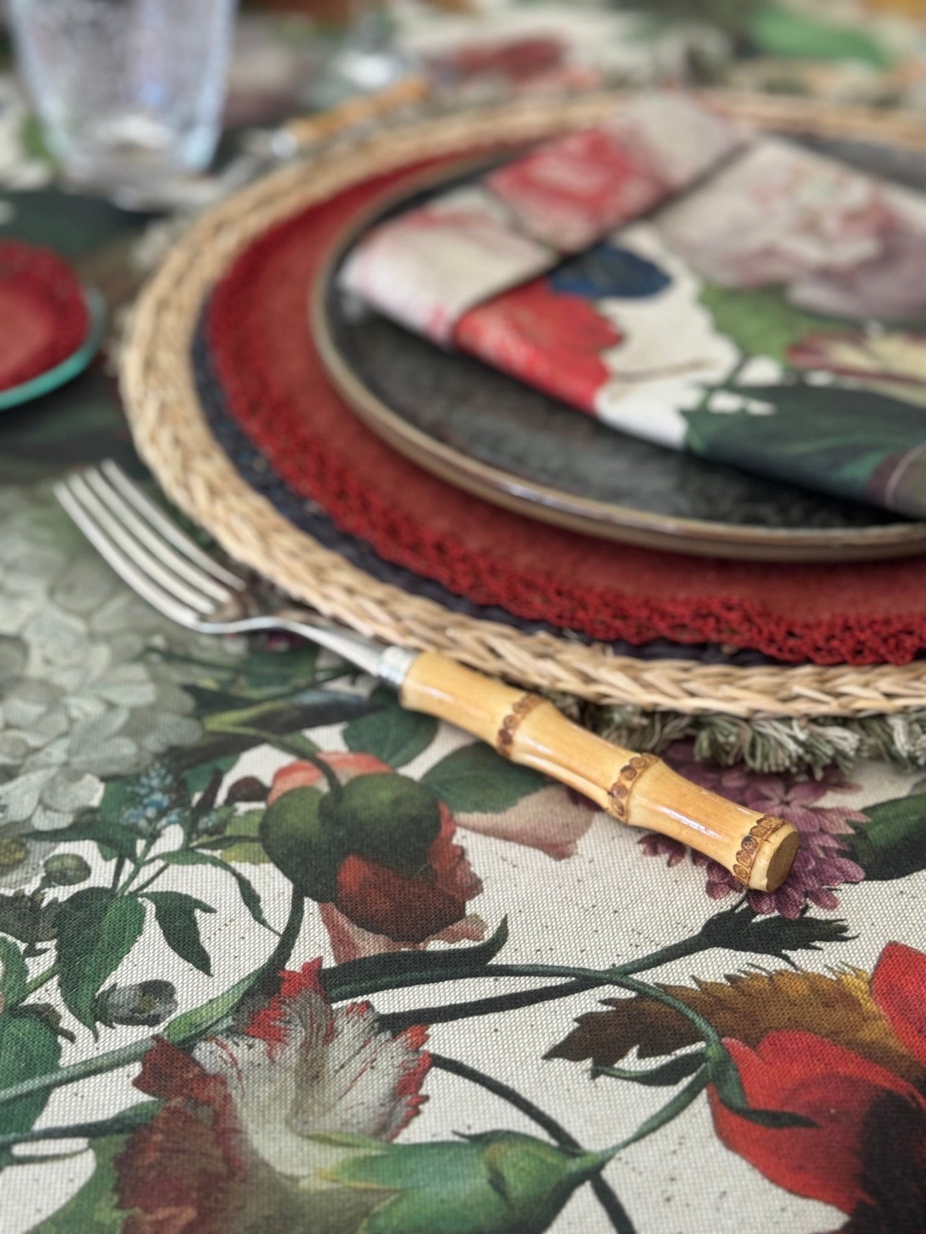 Cuida tu mantel con un lavado sin mezclar otras prendas y planchado por el reverso, y disfrutarás durante años de sus colores vibrantes y su tejido natural como el primer día.