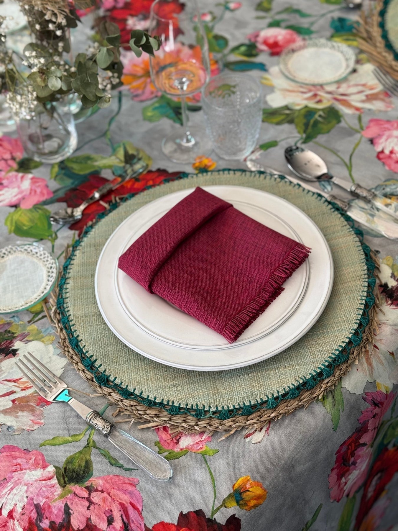 Cuida tu mantel con un lavado sin mezclar otras prendas y planchado por el reverso, y disfrutarás durante años de sus colores vibrantes y su tejido natural como el primer día.