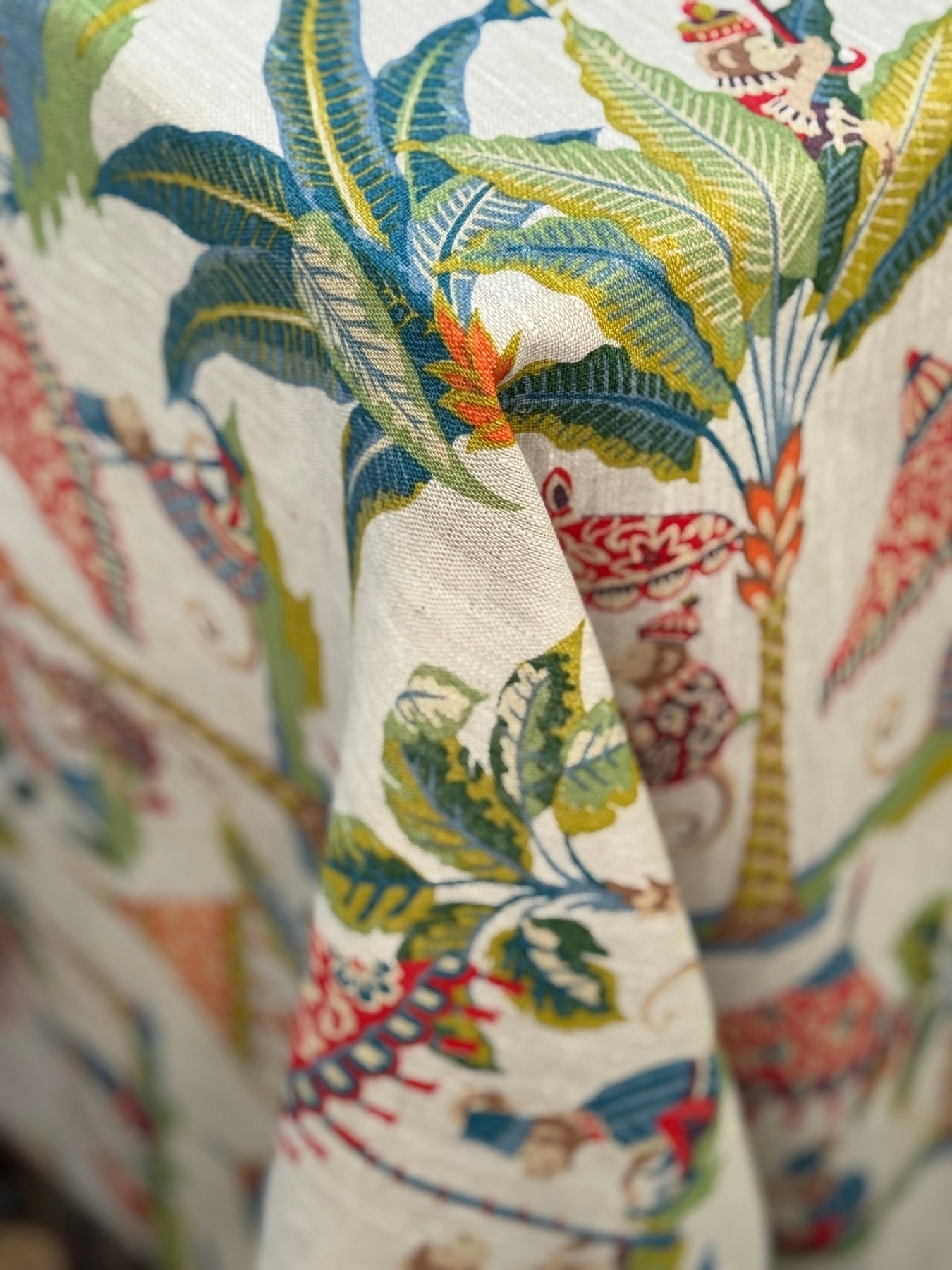 Esta tela tiene un ancho de 1,50 metros, por lo que el ancho máximo de tu mesa puede ser de hasta 1 metro.