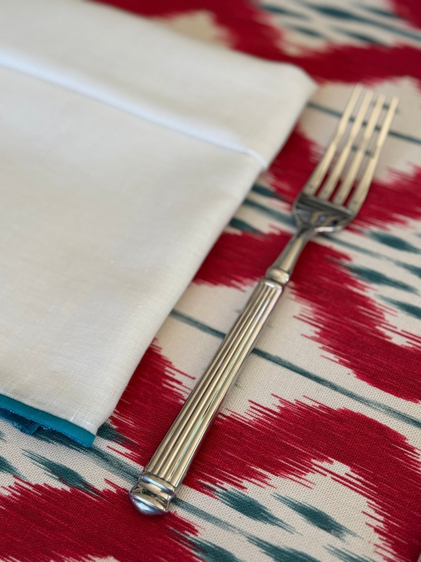 Confeccionados a mano en nuestro atelier en Madrid: líneas puras y costuras perfectas que visten su mesa con la precisión y el porte de la alta costura.