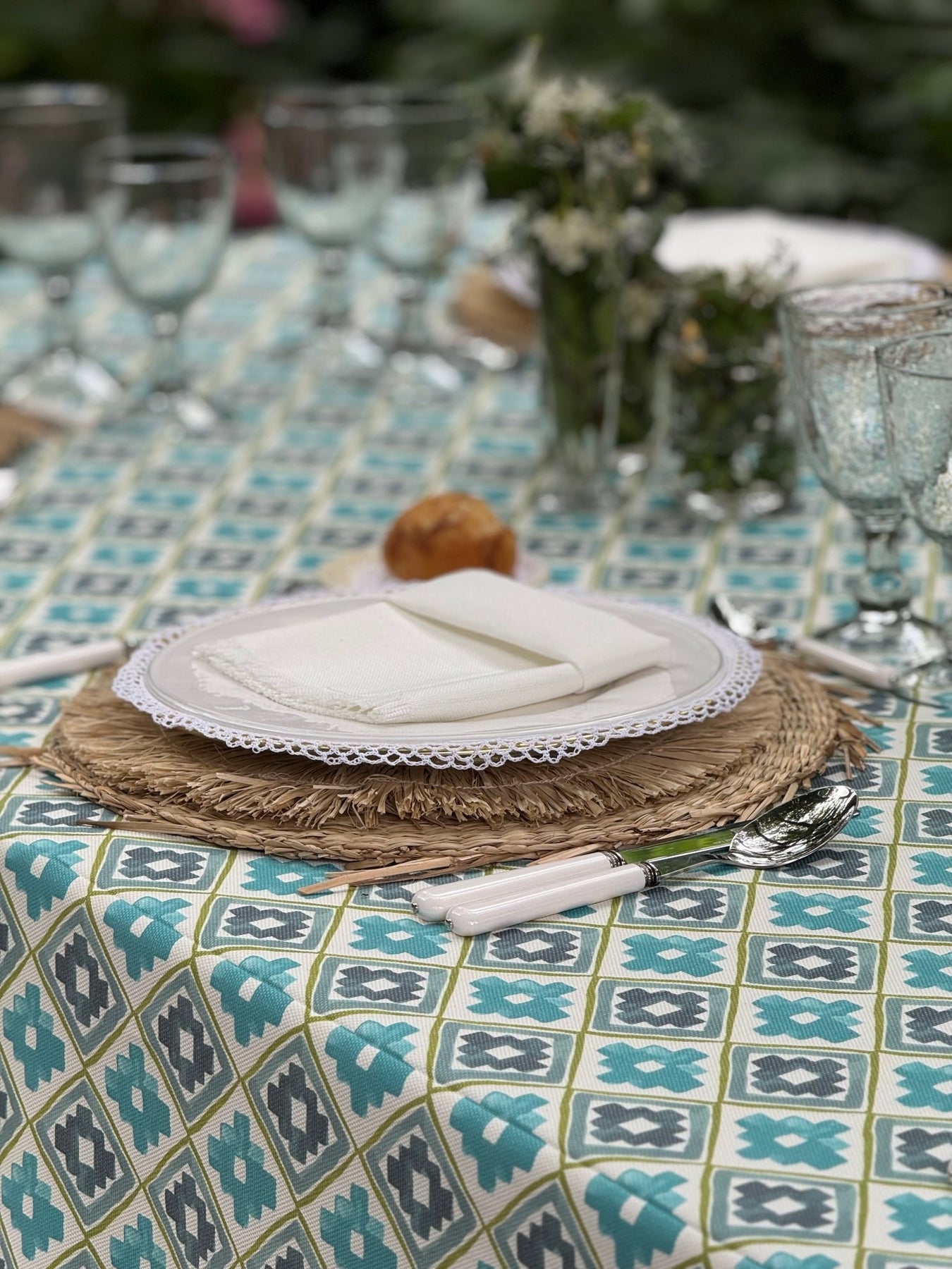 Cuida tu mantel con un lavado sin mezclar otras prendas y planchado por el reverso, y disfrutarás durante años de sus colores vibrantes y su tejido natural como el primer día.