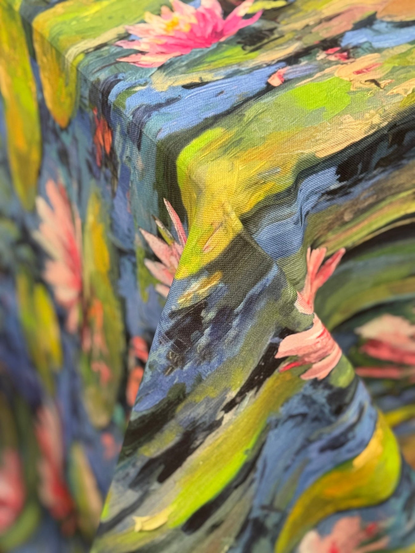 Esta tela tiene un ancho de 2,80 metros, por lo que el ancho máximo de tu mesa puede ser de hasta 2 metros.