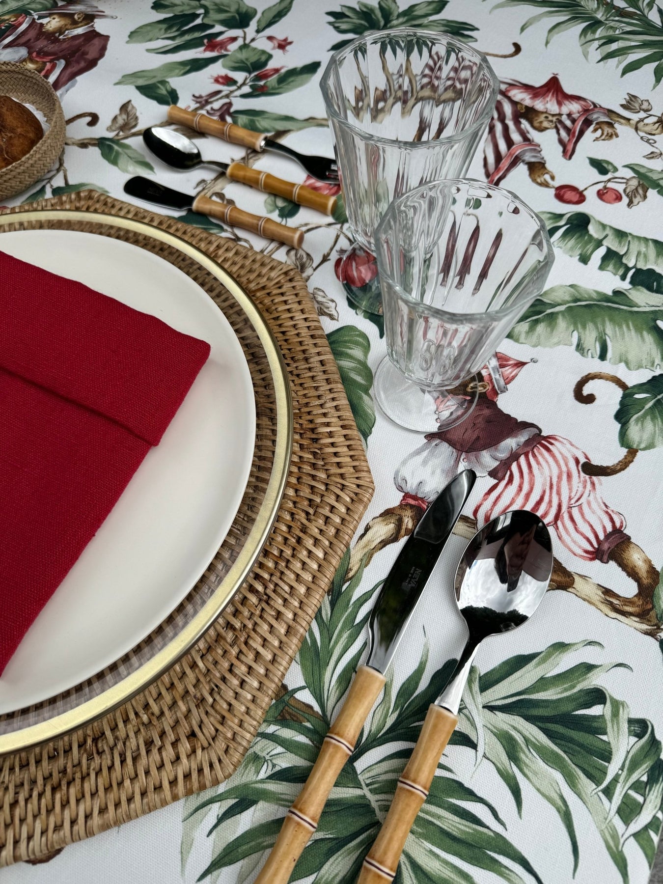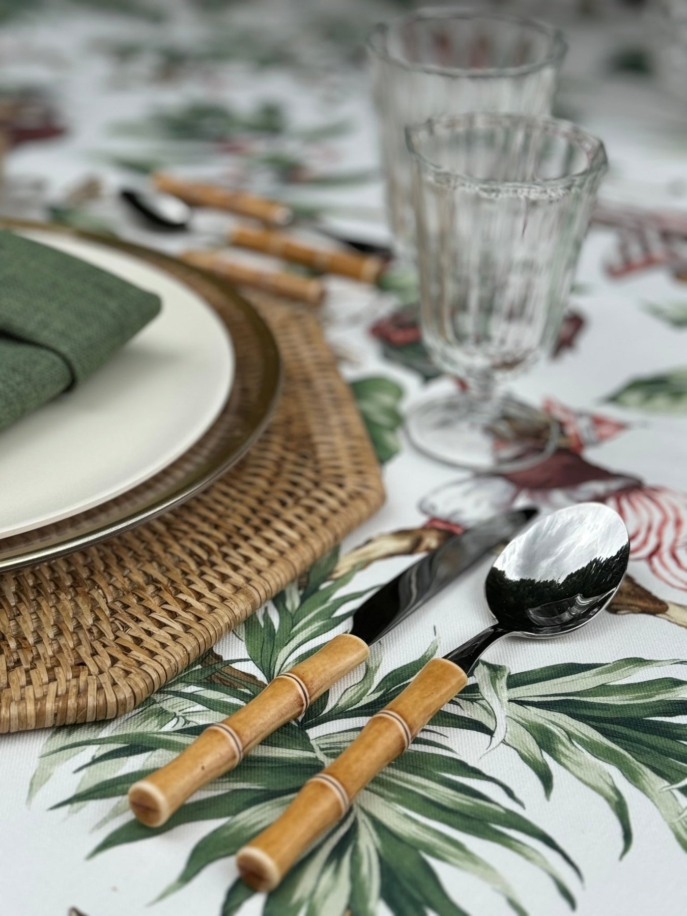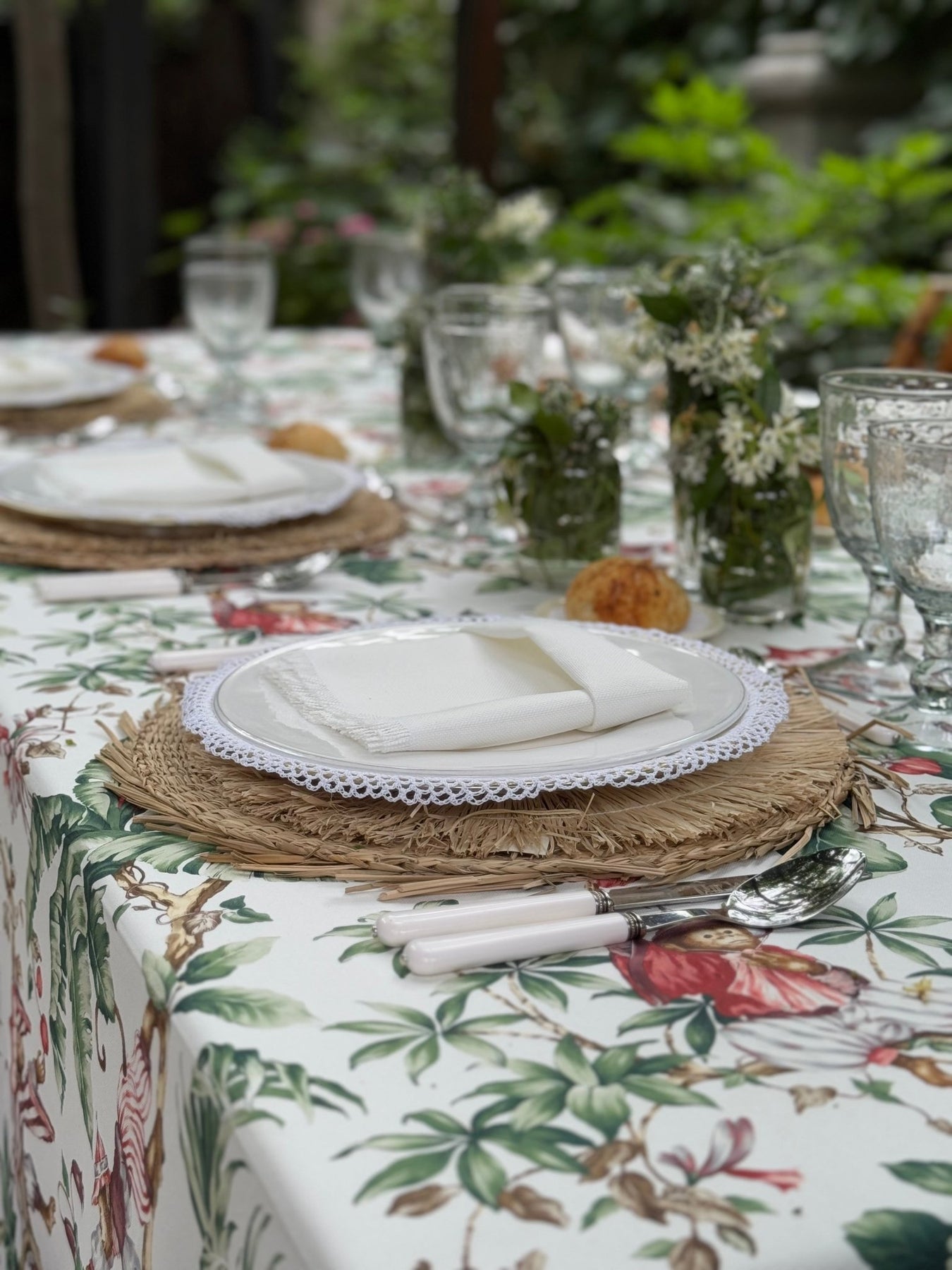 Cuida tu mantel con un lavado sin mezclar otras prendas y planchado por el reverso, y disfrutarás durante años de sus colores vibrantes y su tejido natural como el primer día.