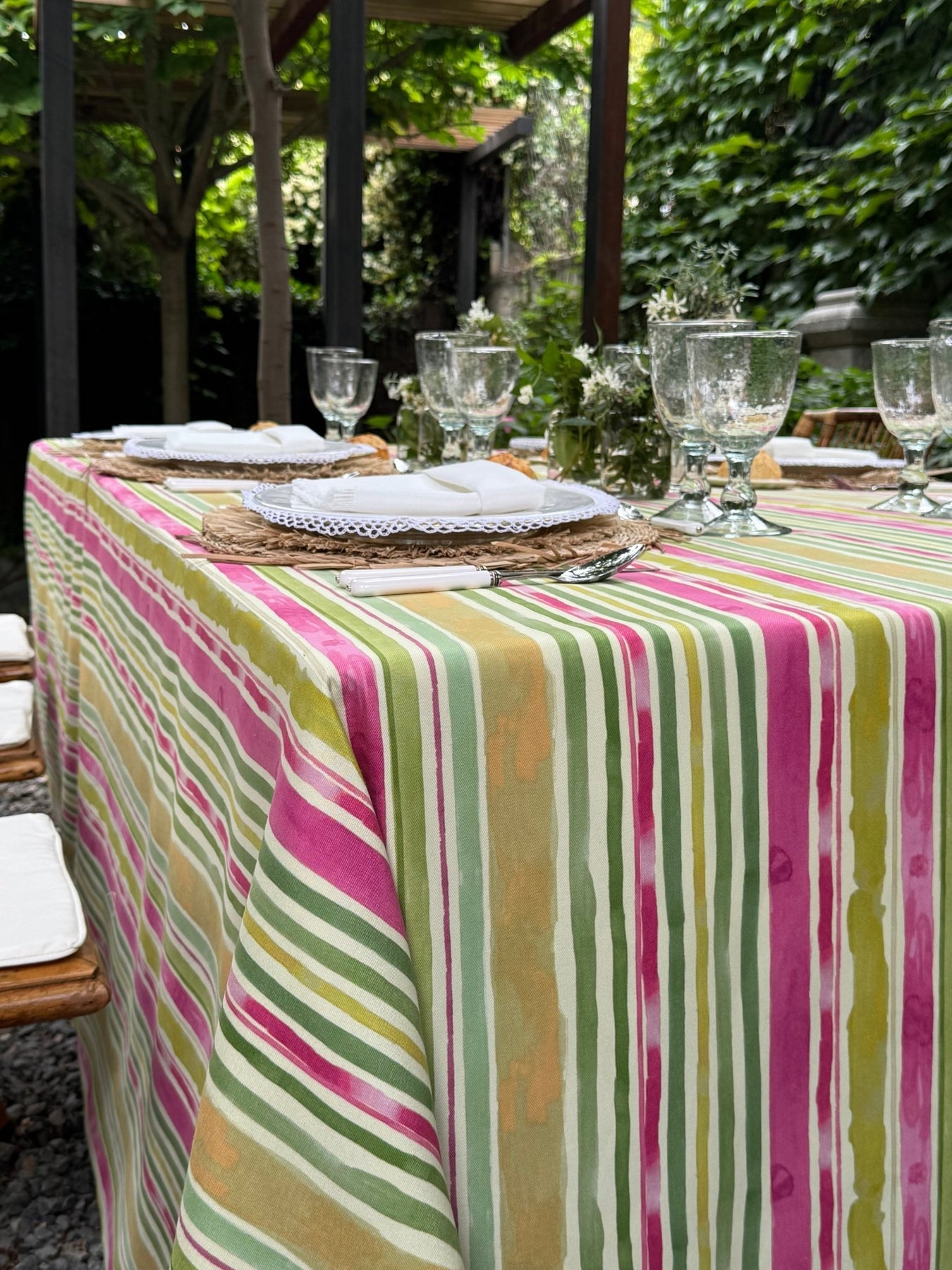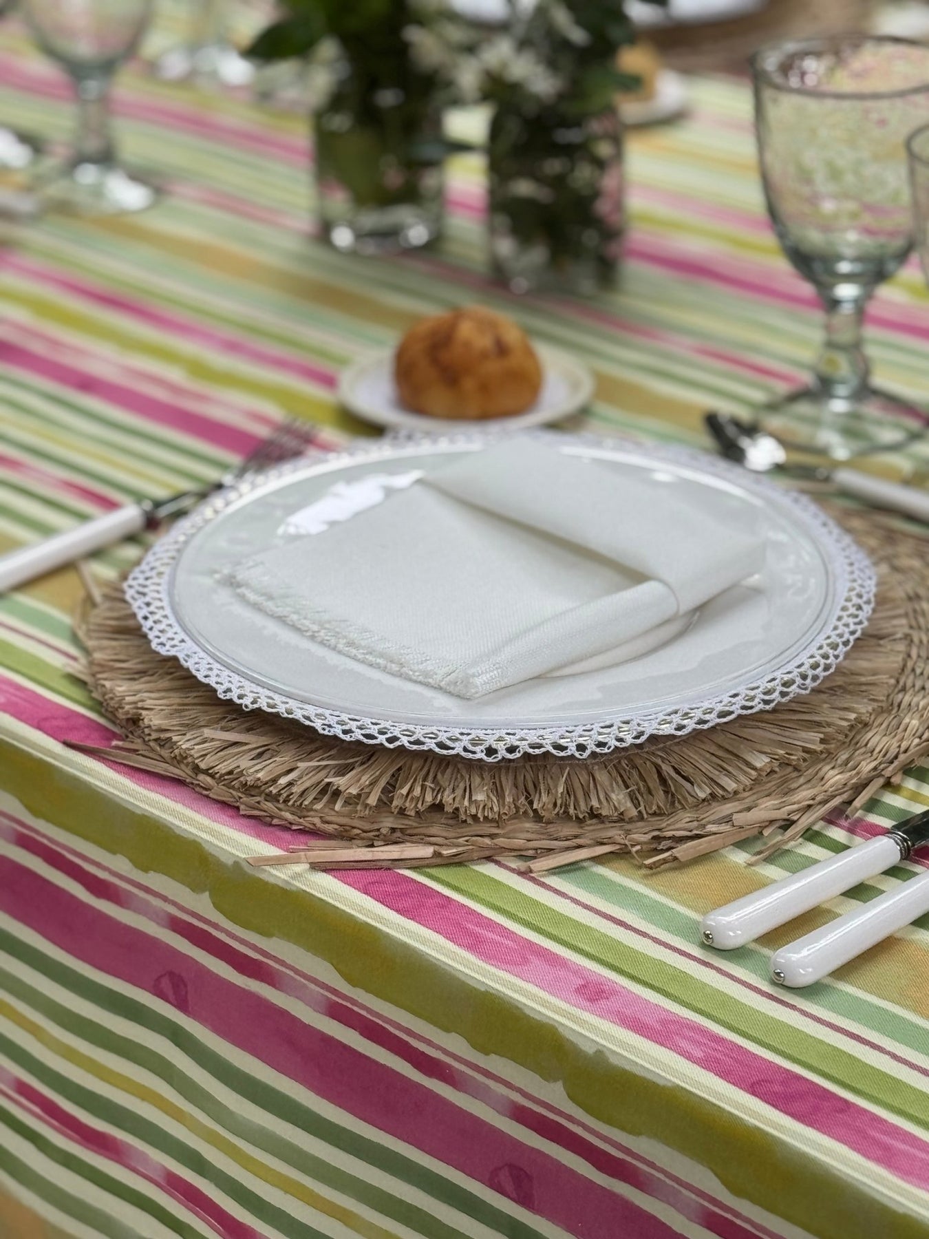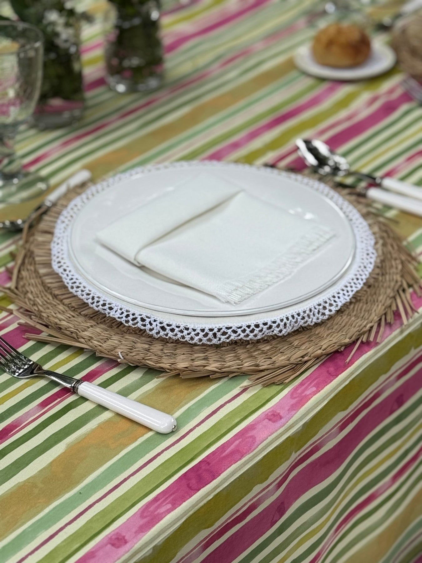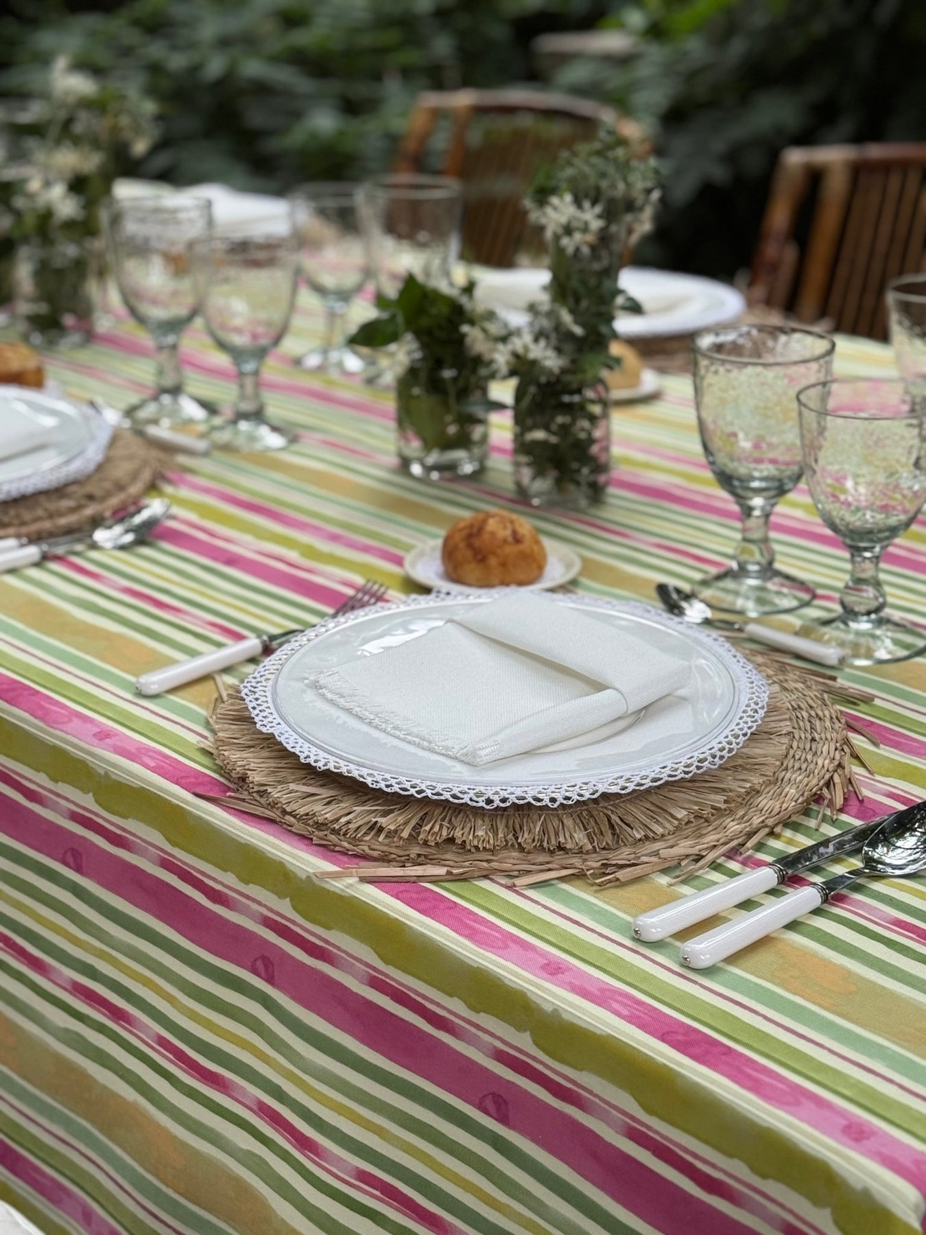 Cuida tu mantel con un lavado sin mezclar otras prendas y planchado por el reverso, y disfrutarás durante años de sus colores vibrantes y su tejido natural como el primer día.