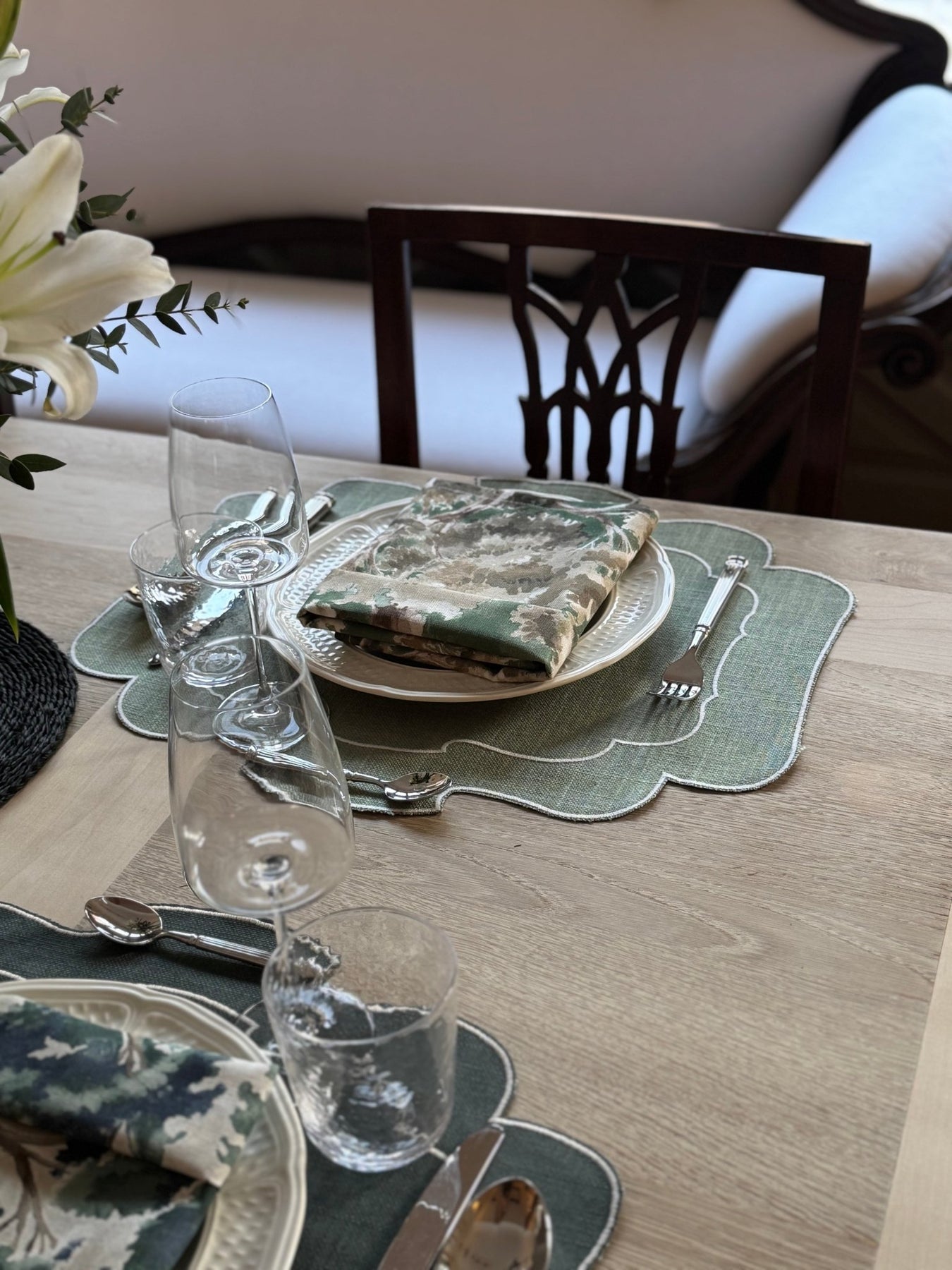 Manteles individuales en lino de alta calidad, totalmente diseñados y cortados a mano con sumo cuidado y destreza.