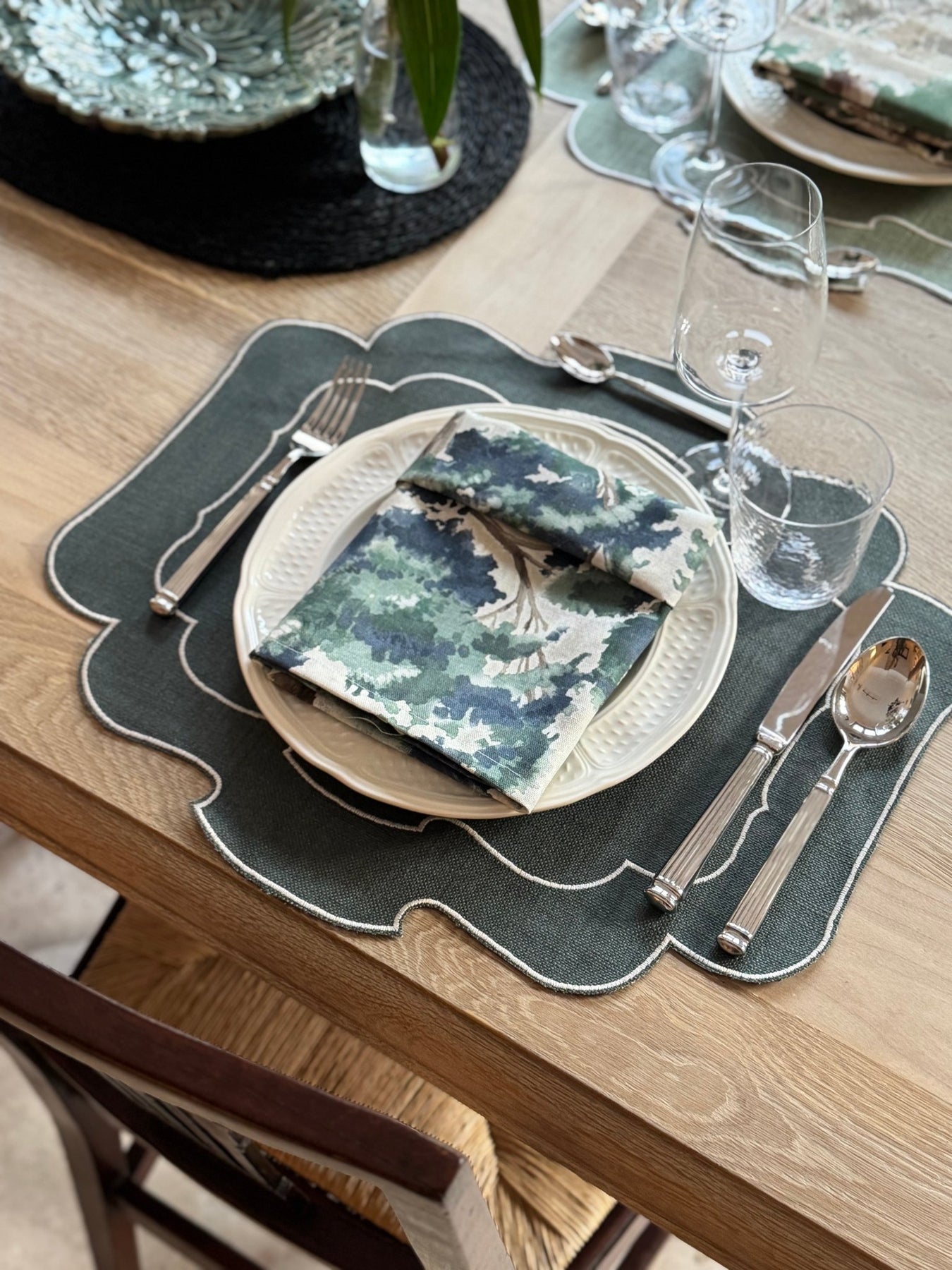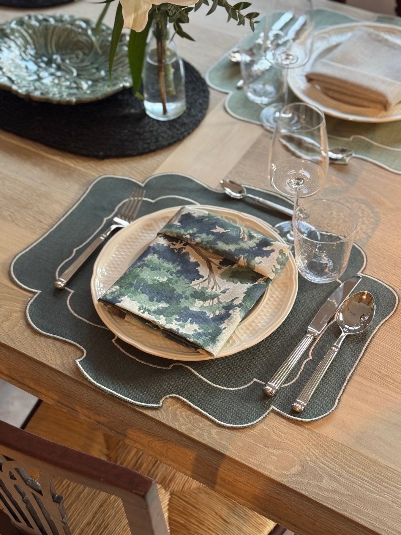 Manteles individuales en lino de alta calidad, totalmente diseñados y cortados a mano con sumo cuidado y destreza.