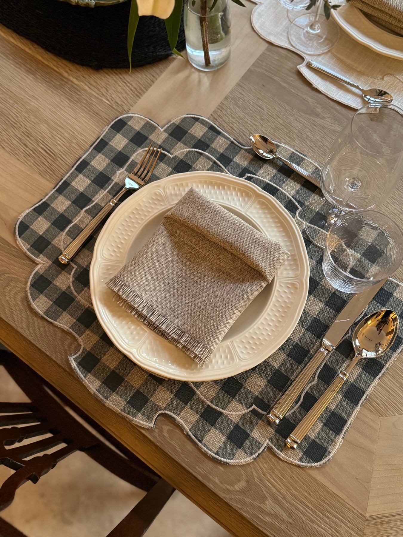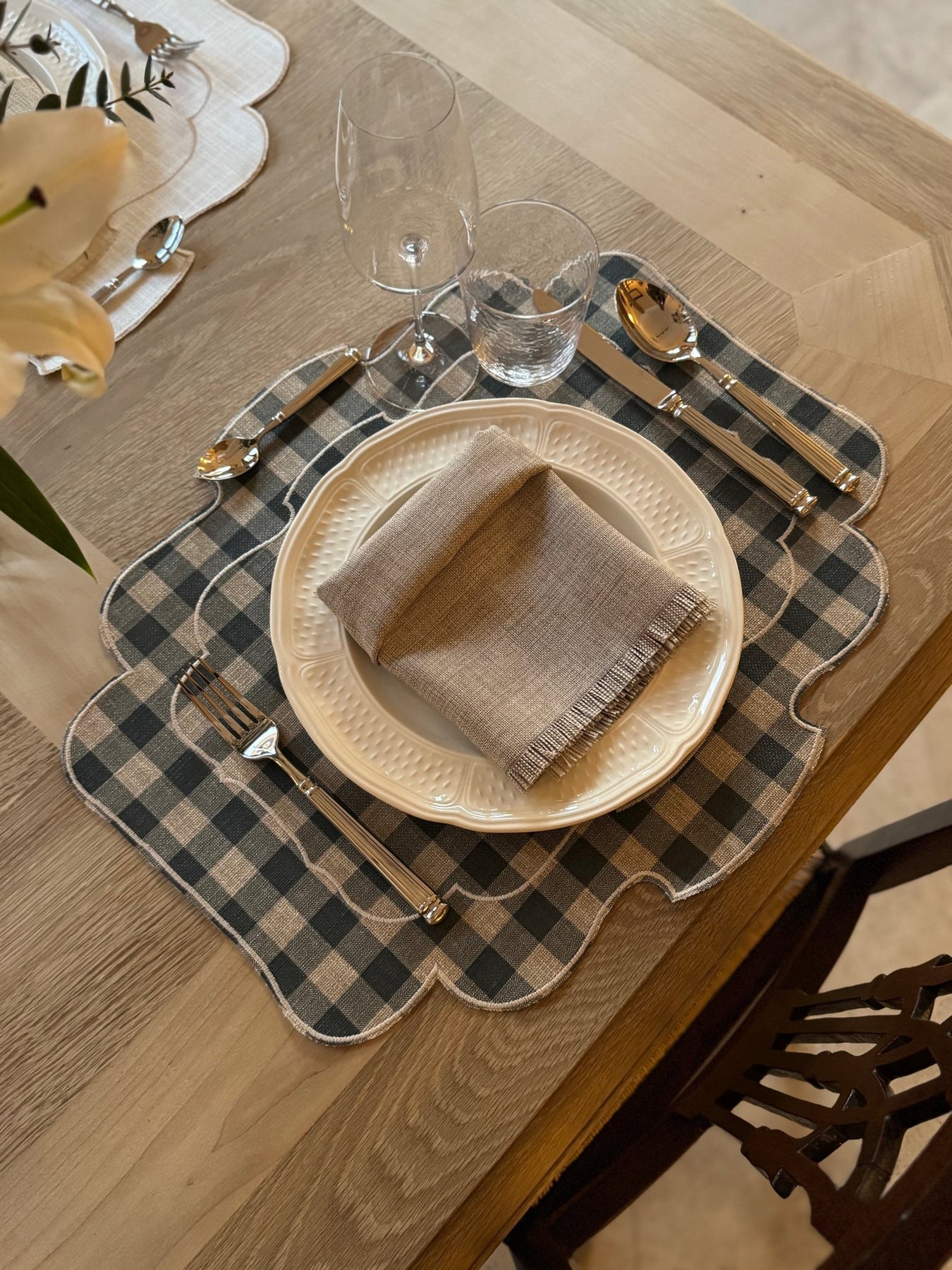 Manteles individuales antimanchas en lino de alta calidad, totalmente diseñados y cortados a mano con sumo cuidado y destreza.