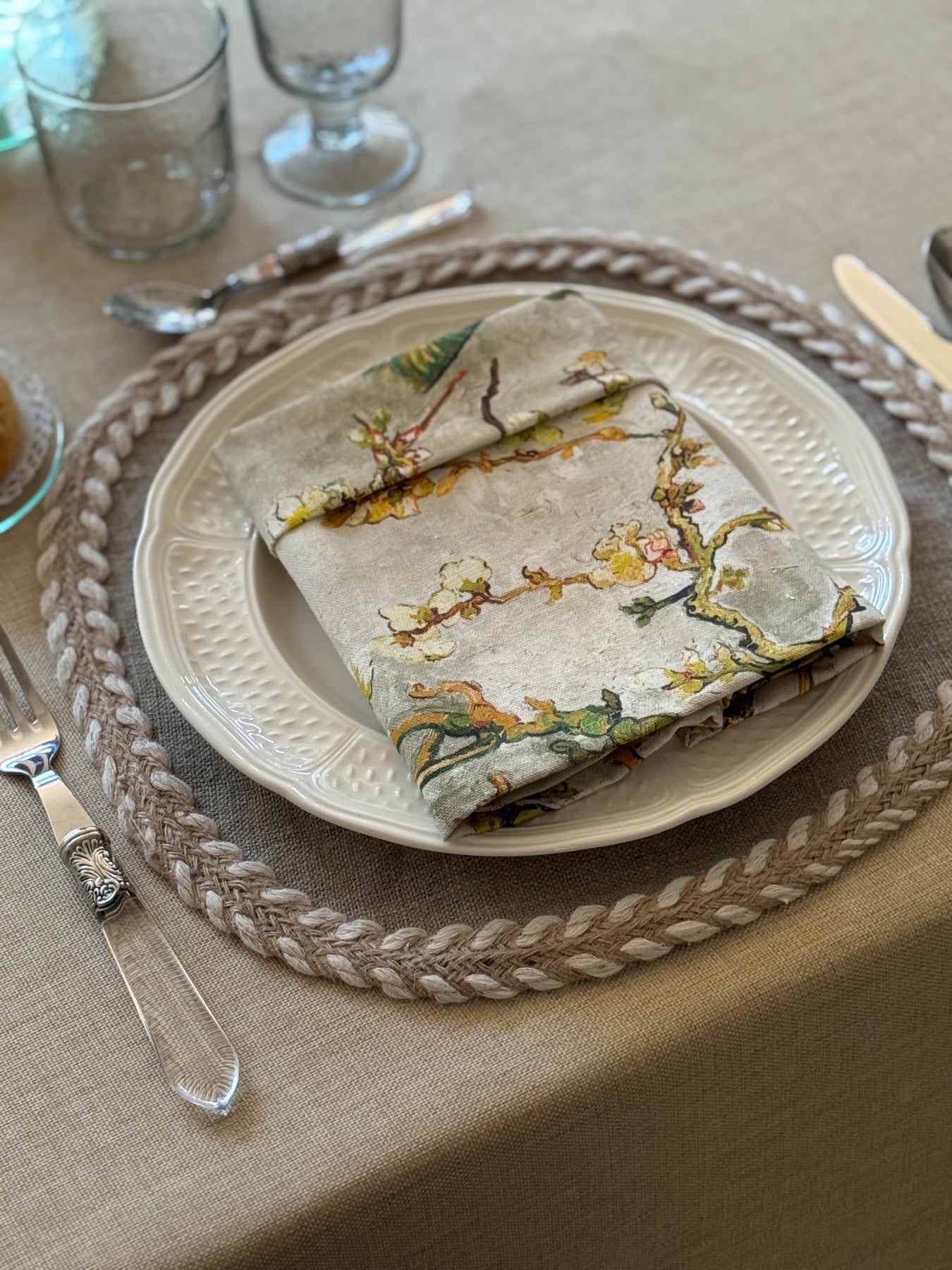 En La Compañía Francesa nos gusta hacer manteles cuadrados para mesas redondas, ya que lucen más sofisticados y modernos.