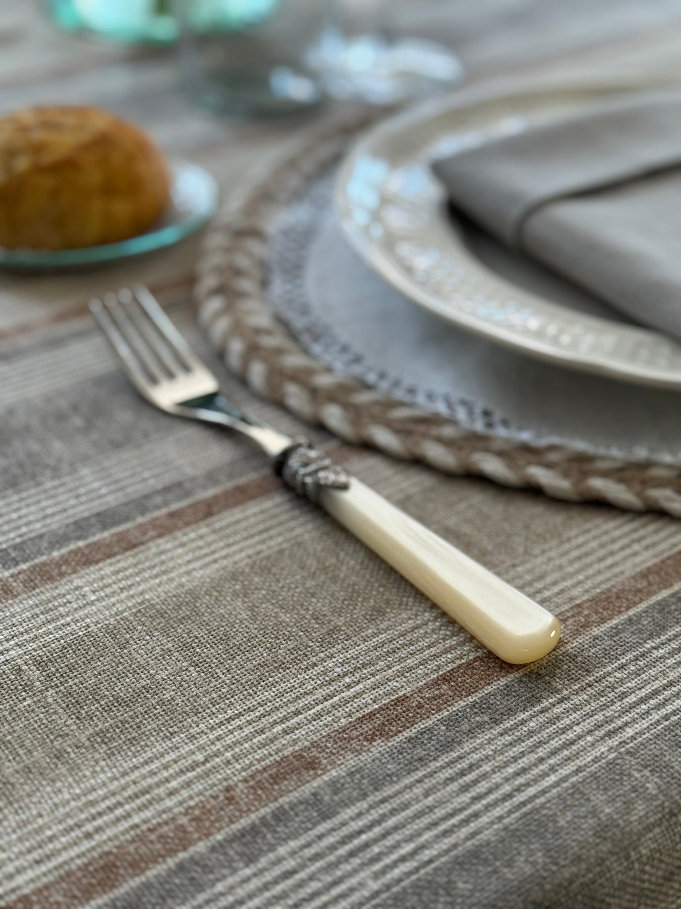 En La Compañía Francesa nos gusta hacer manteles cuadrados para mesas redondas, ya que lucen más sofisticados y modernos.