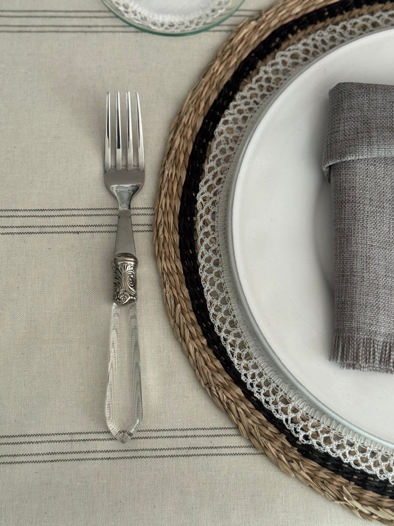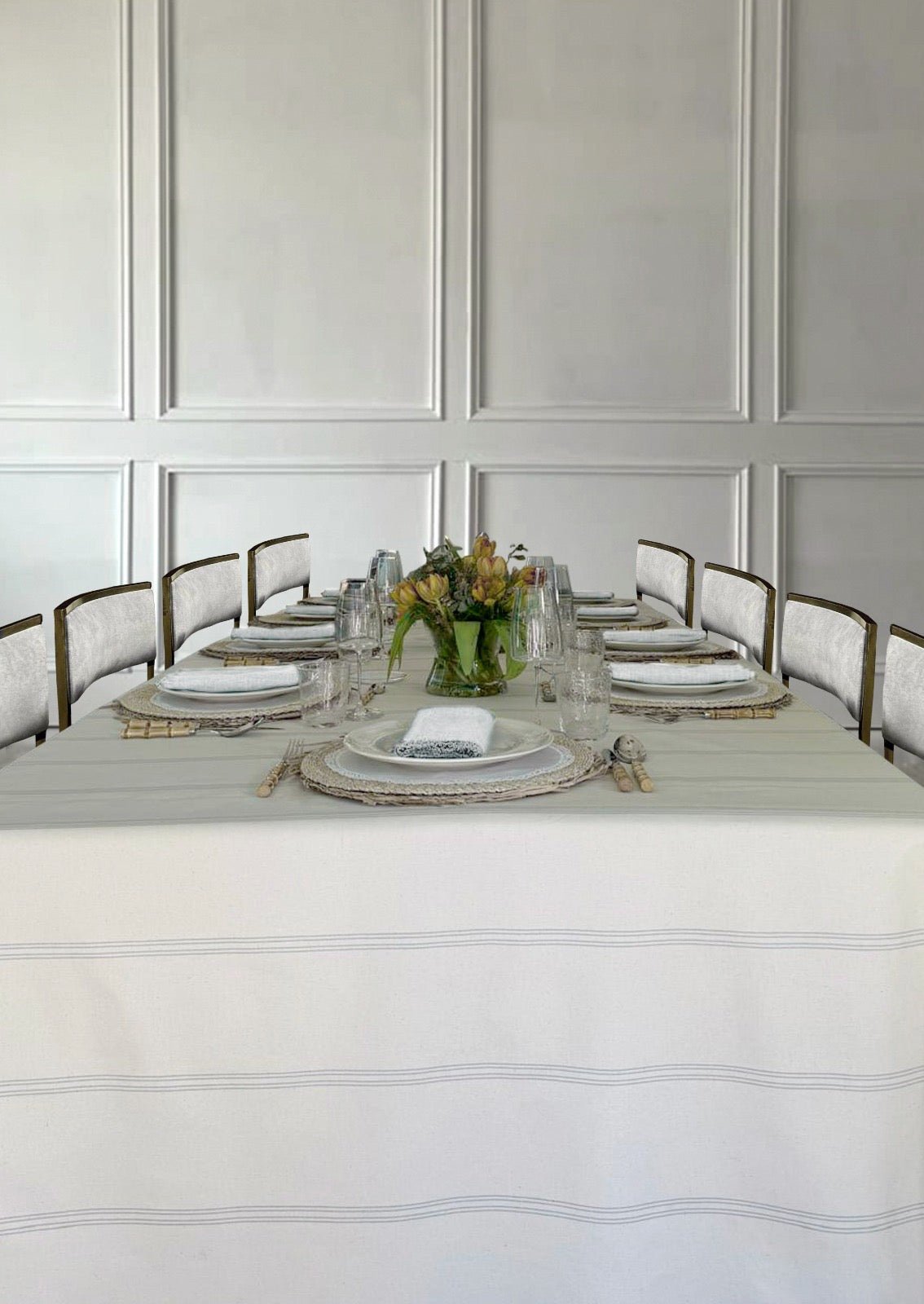 Confeccionados a mano en nuestro atelier en Madrid: líneas puras y costuras perfectas que visten su mesa con la precisión y el porte de la alta costura.