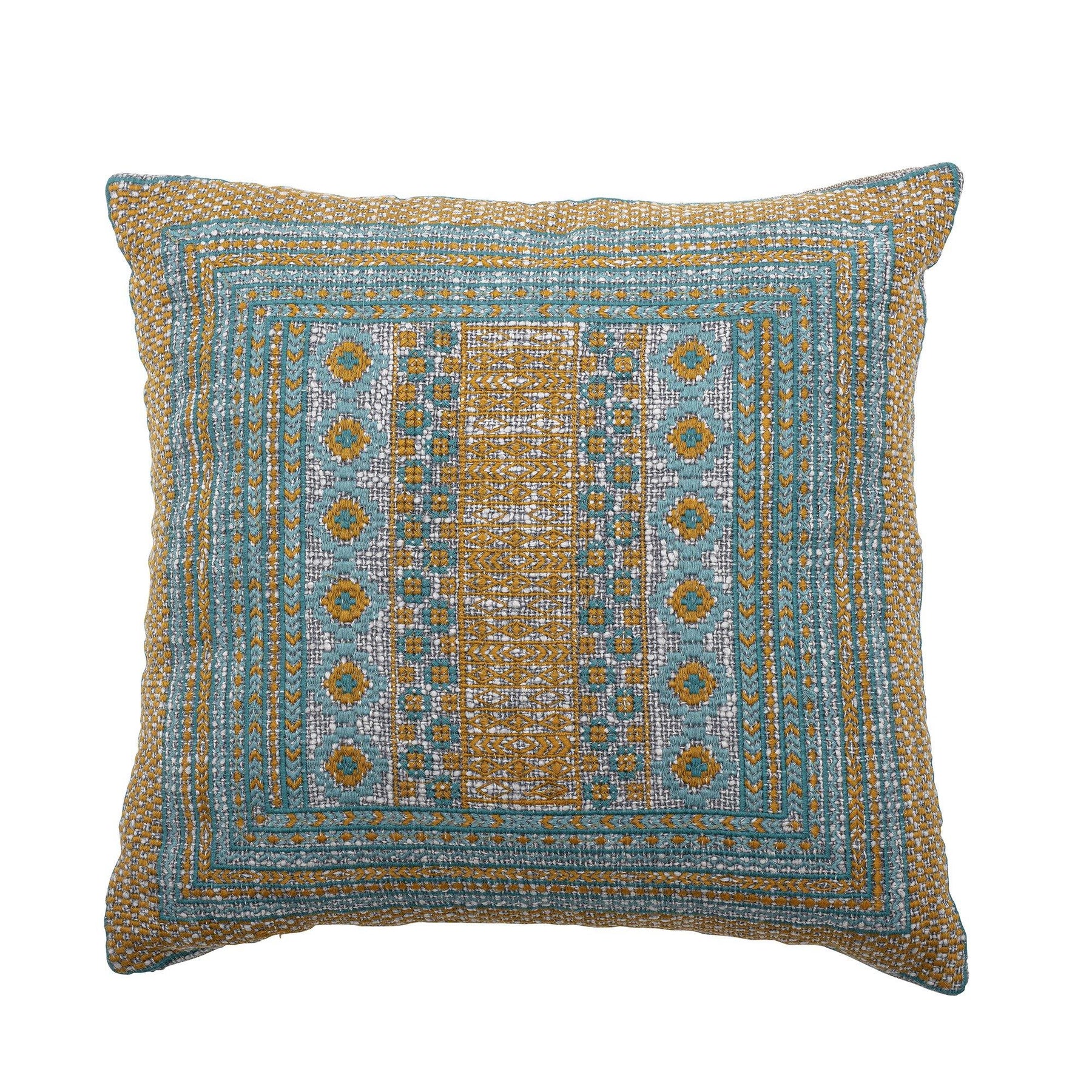 Añade color a la decoración de tu hogar con este cojín. Tejido en 100% algodón en un detallado patrón con una atrevida mezcla de colores aporta, un aspecto relajado y acogedor. El cojín dará un soplo de aire fresco y desenfadado a tu butaca, sofá o cama, con sus vivos colores.