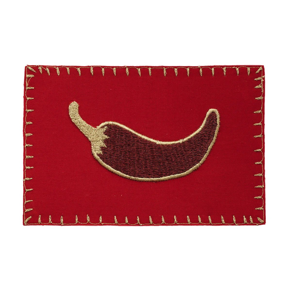 Sofisticada decoración de postal con motivo de chile con bordes dorados.