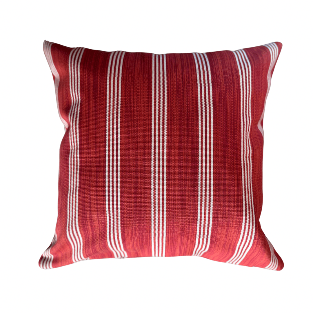 Elegante funda de cojín con estampado a rayas en color rojo.
