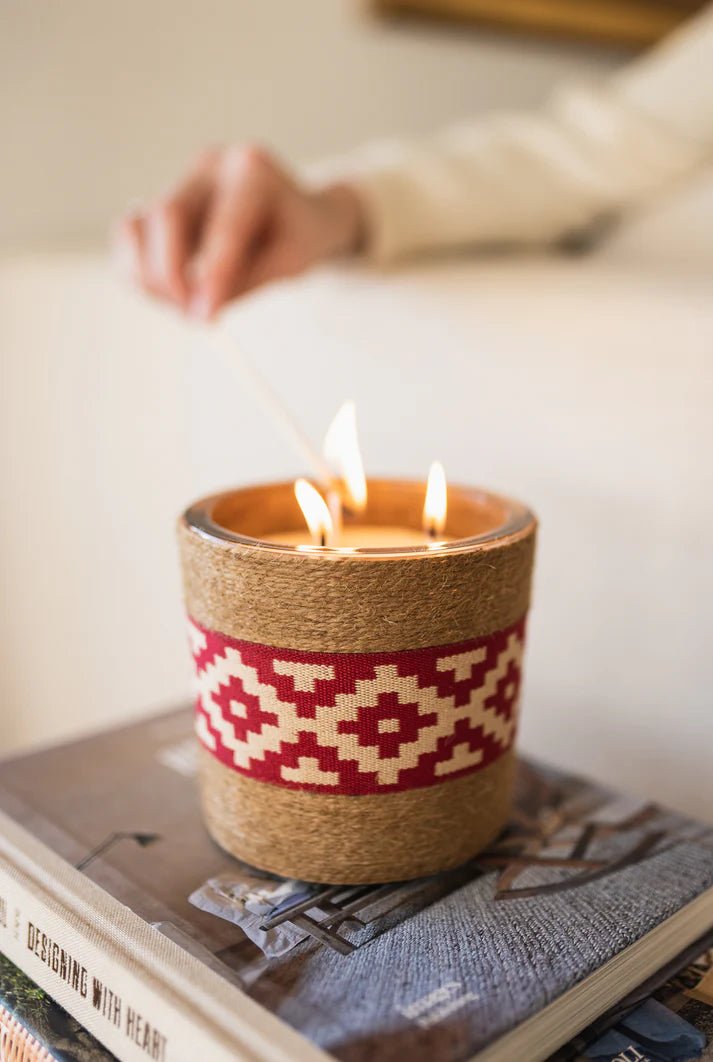 Están fabricadas con cera vegetal, mechas de algodón y cuerdas de yute natural.