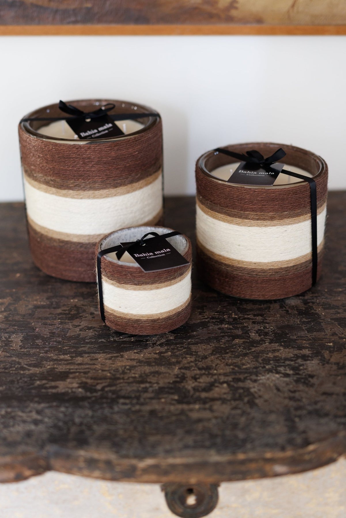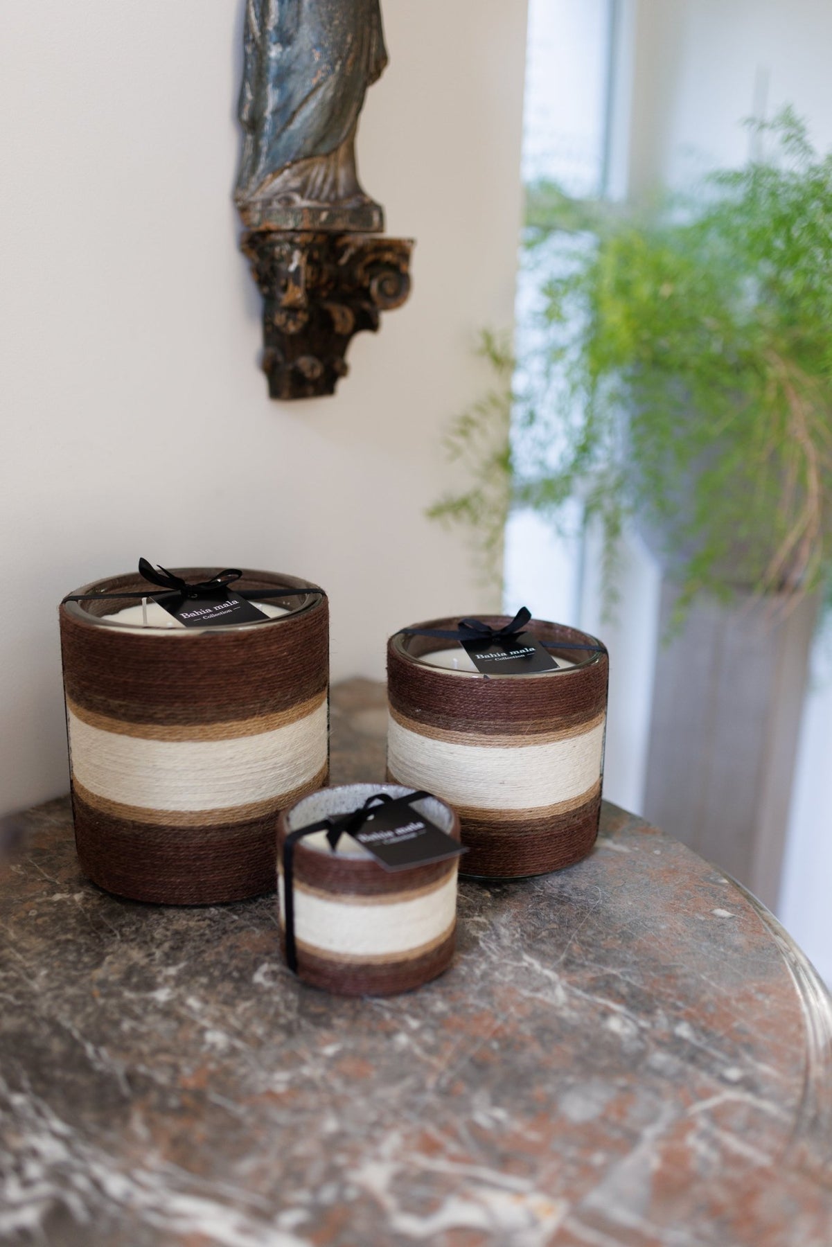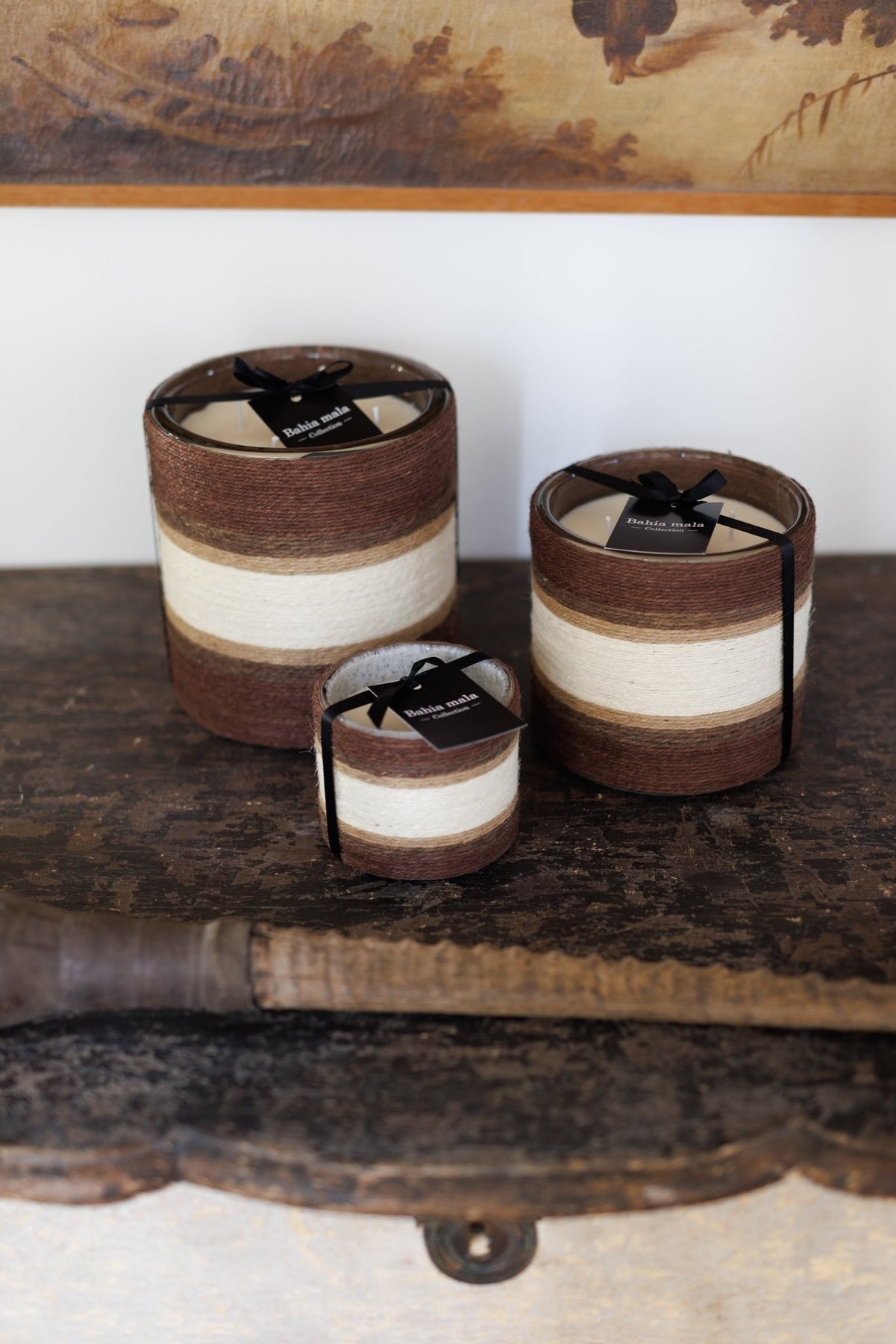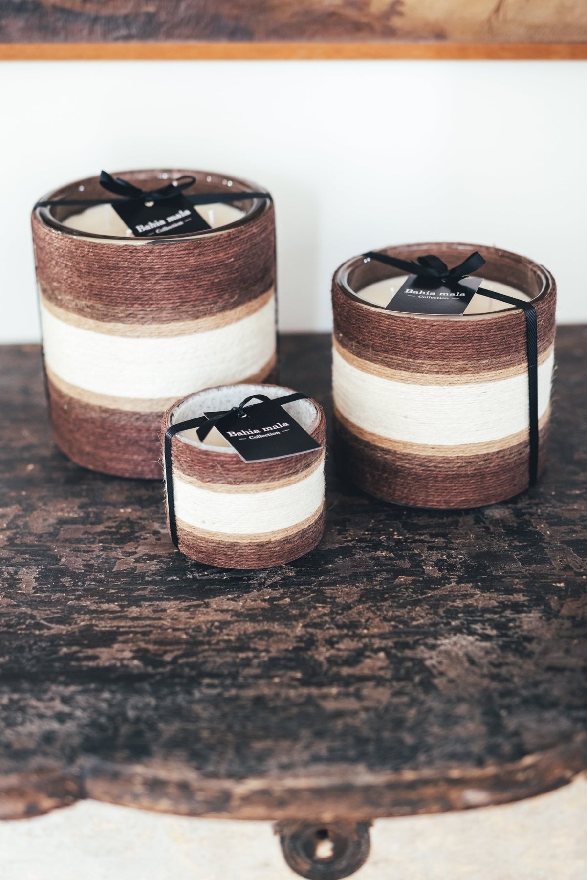 Están fabricadas con cera vegetal, mechas de algodón y cuerdas de yute natural.