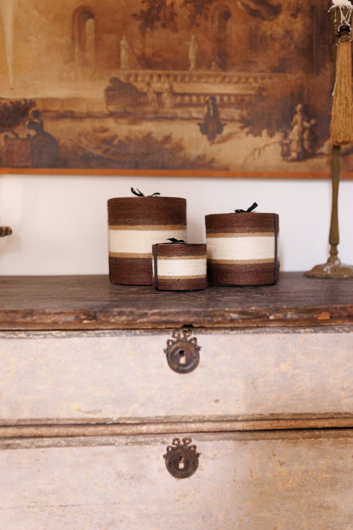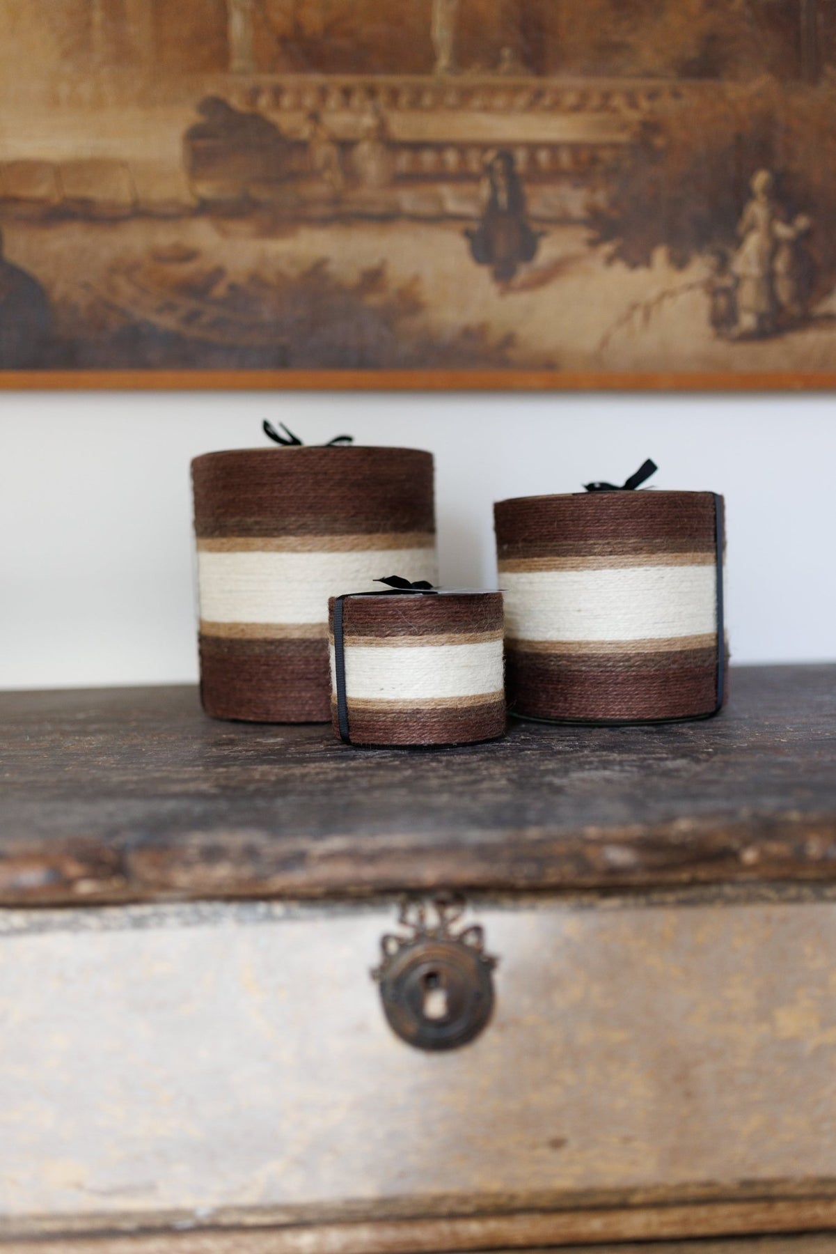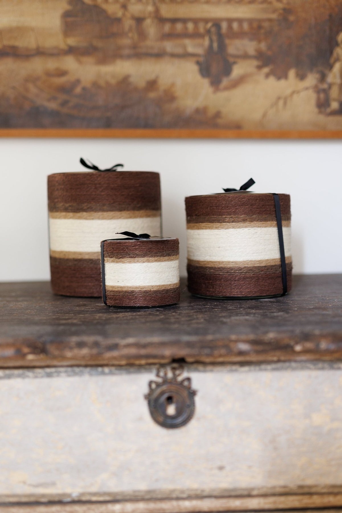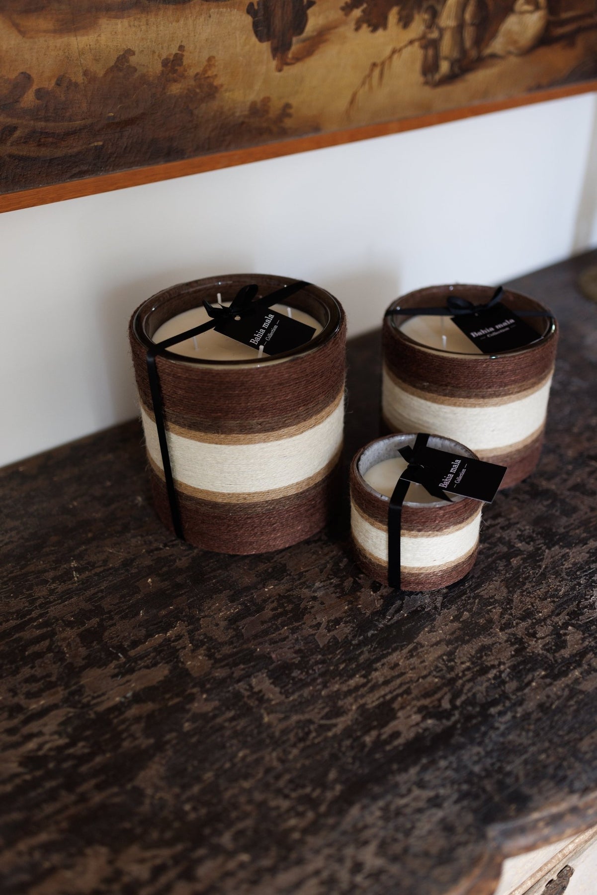Están fabricadas con cera vegetal, mechas de algodón y cuerdas de yute natural.
